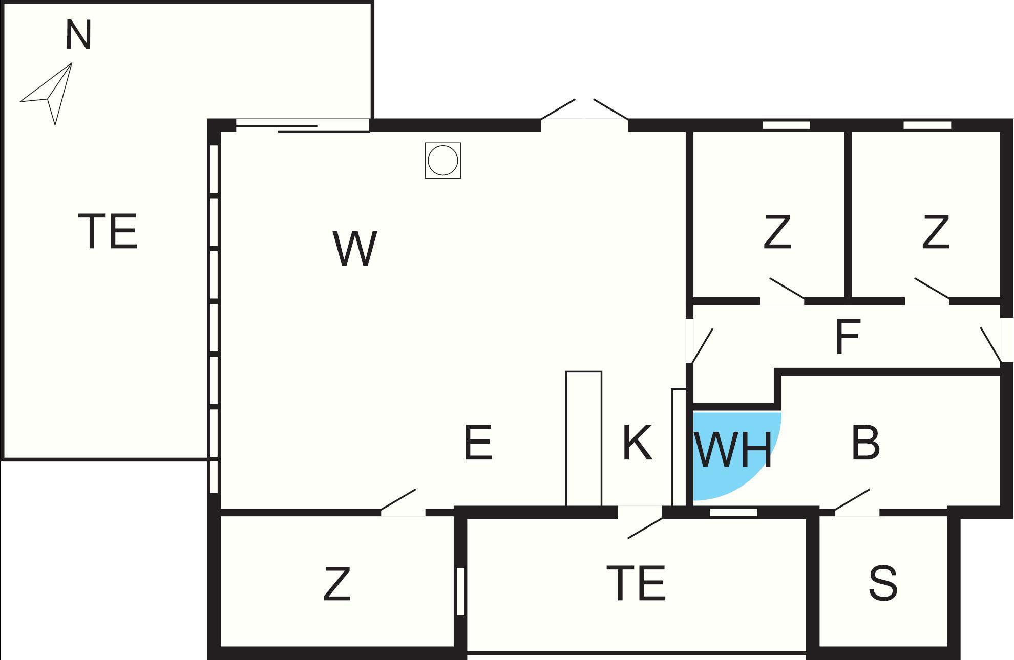 Off. Küche: E-Herd, Kühlschr. m. Gefrierfach, Mikrow., Abzugsh., Kaffeem., Spülm., Waschm, Trockner