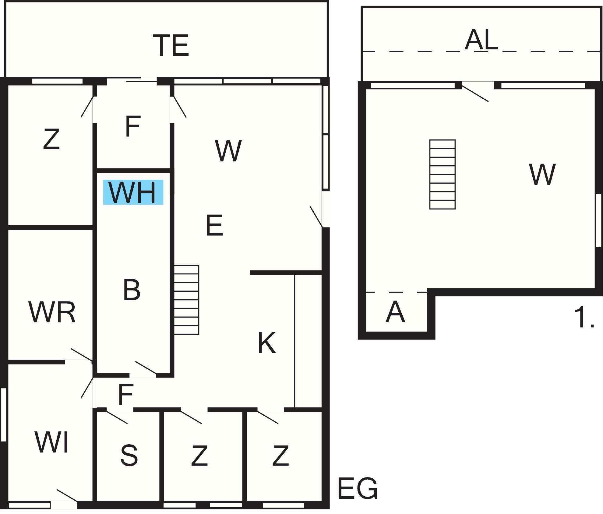 Bad: WC, Waschb., Dusche, Fußbodenheiz.