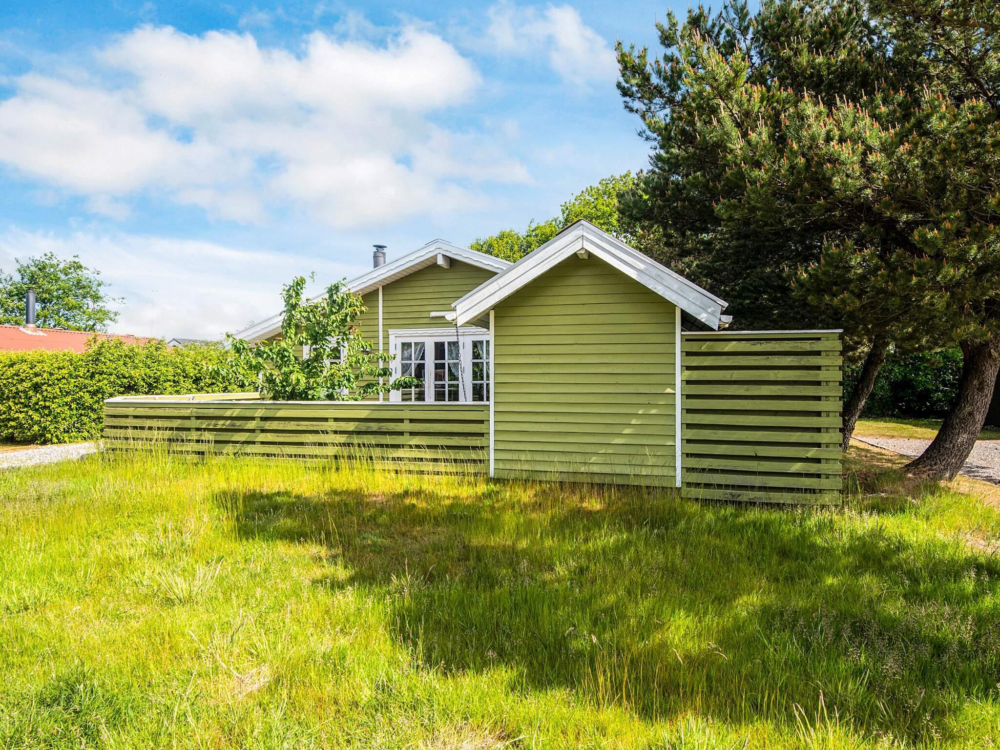 Ferienhaus im Ferienort Bork Hytteby in der Nähe des Ringkøbing Fjords. Das Haus ist gut ausgestattet und nutzt jeden Quadratmeter optimal. Der offene Küchen- und Wohnbereich bildet den idealen Treffpunkt für die ganze Familie. Das Haus verfügt über zwei Schlafzimmer: eines mit Doppelbett und das zweite mit zwei Einzelbetten. Für die Kleinen steht ein Kinderbett zur Verfügung. Über der Küche befindet sich ein gemütlicher Dachboden (Hems), auf dem zwei weitere Betten aufgestellt werden können und so zusätzliche Schlafmöglichkeiten bieten.