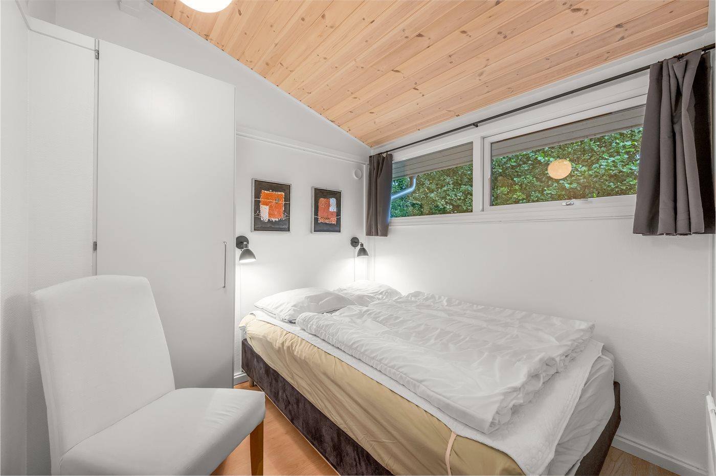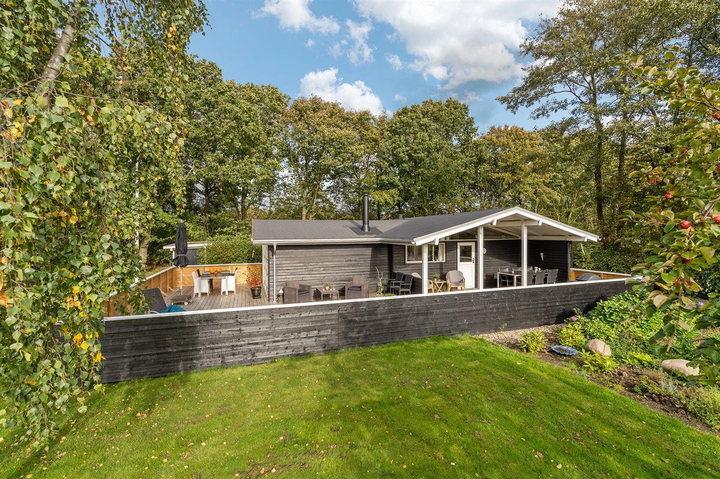 Das Haus ist schön eingerichtet und bietet Platz für 6 Personen. Die Terrasse ist eingezäunt und teilweise überdacht. Das Haus liegt auf einem herrlichen Naturgrundstück, das von Büschen und Bäumen umgeben ist. Ein großer Spielplatz befindet sich in der Nähe.