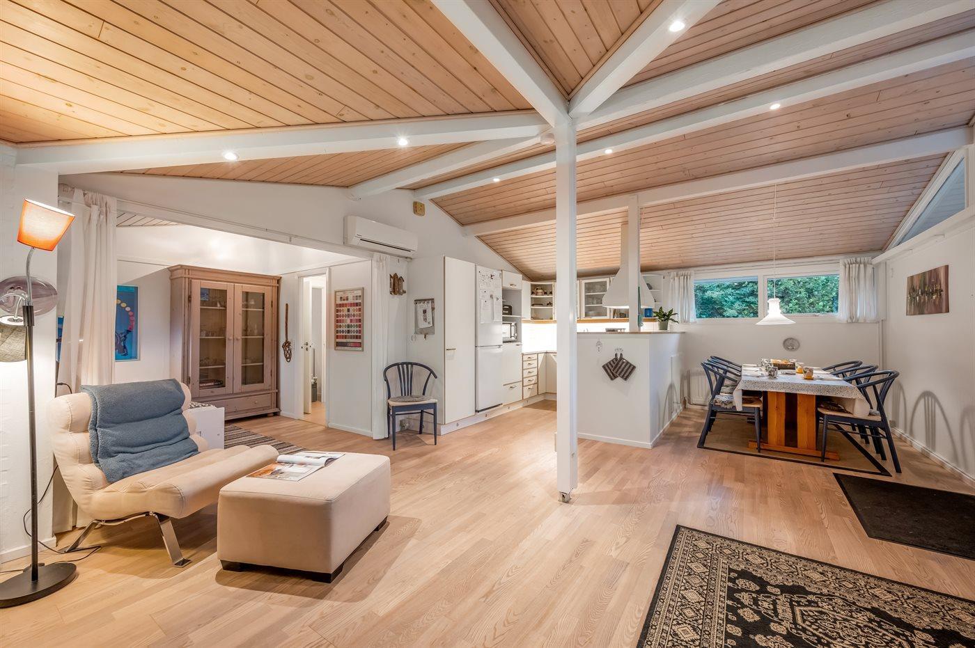 Das Ferienhaus eignet sich für 6 Personen. Die Ferienunterkunft hat eine Wohnfläche von 84 m² und wurde 1972 gebaut. 2012 wurde die Ferienunterkunft teilweise renoviert. Es ist erlaubt 2 Haustiere mitzubringen. In der Ferienunterkunft ist eine energiesparender Luft zu Luft Wärmepumpe installiert. Die Ferienunterkunft ist mit Waschmaschine ausgestattet. Wäschetrockner. Tiefkühlmöglichkeit mit 120 Liter Nutzinhalt. Es gibt außerdem einen Kaminofen. Für die jüngsten Feriengäste ist 1 Kinderhochstuhl vorhanden.