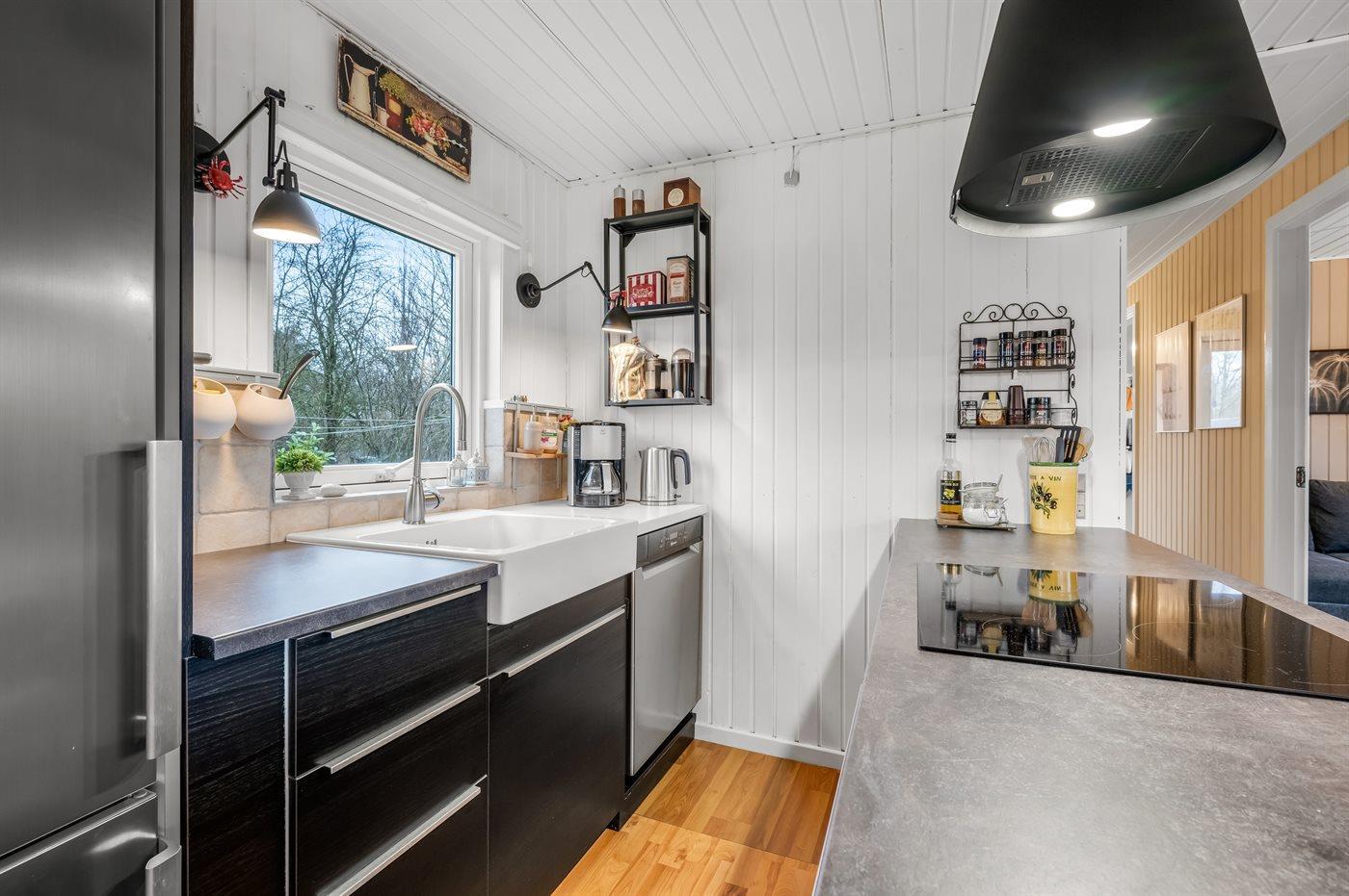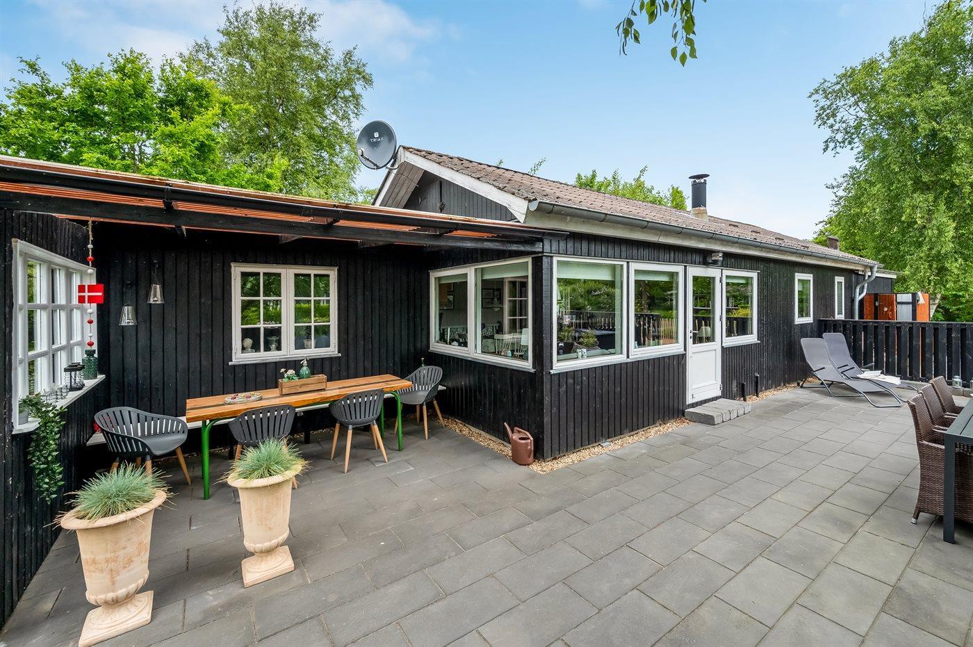 Die Ferienunterkunft liegt auf einem 994 m² großen Naturgrundstück. Das Grundstück ist eingezäunt. Die Entfernung zum Meer beträgt 7200 m. Die Entfernung zum Fjord beträgt 550 m. Es gibt einen Badesteg in der Nähe. Die nächste Einkaufsmöglichkeit liegt 800 m entfernt. Es steht ein offenes Terrassenareal zur Verfügung. Außerdem gibt es überdachte Terrasse. Geräteraum. Parkplatz auf dem Grundstück.
