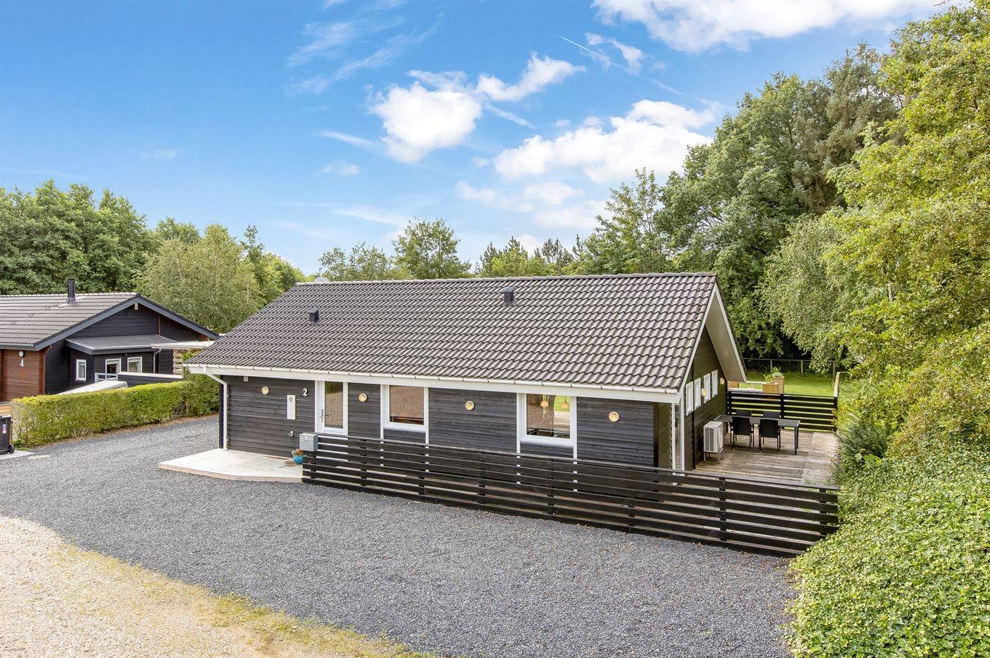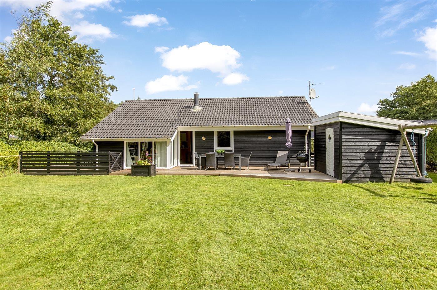 Die Ferienunterkunft liegt auf einem 810 m² großen Naturgrundstück. Das Grundstück ist eingezäunt. Die Entfernung zum Meer beträgt 6550 m. Die Entfernung zum Fjord beträgt 650 m. Die nächste Einkaufsmöglichkeit liegt 800 m entfernt. Es steht ein 80 m² Terrassenareal zur Verfügung. Geräteraum. Schaukel. Sandkasten. Parkplatz auf dem Grundstück.
