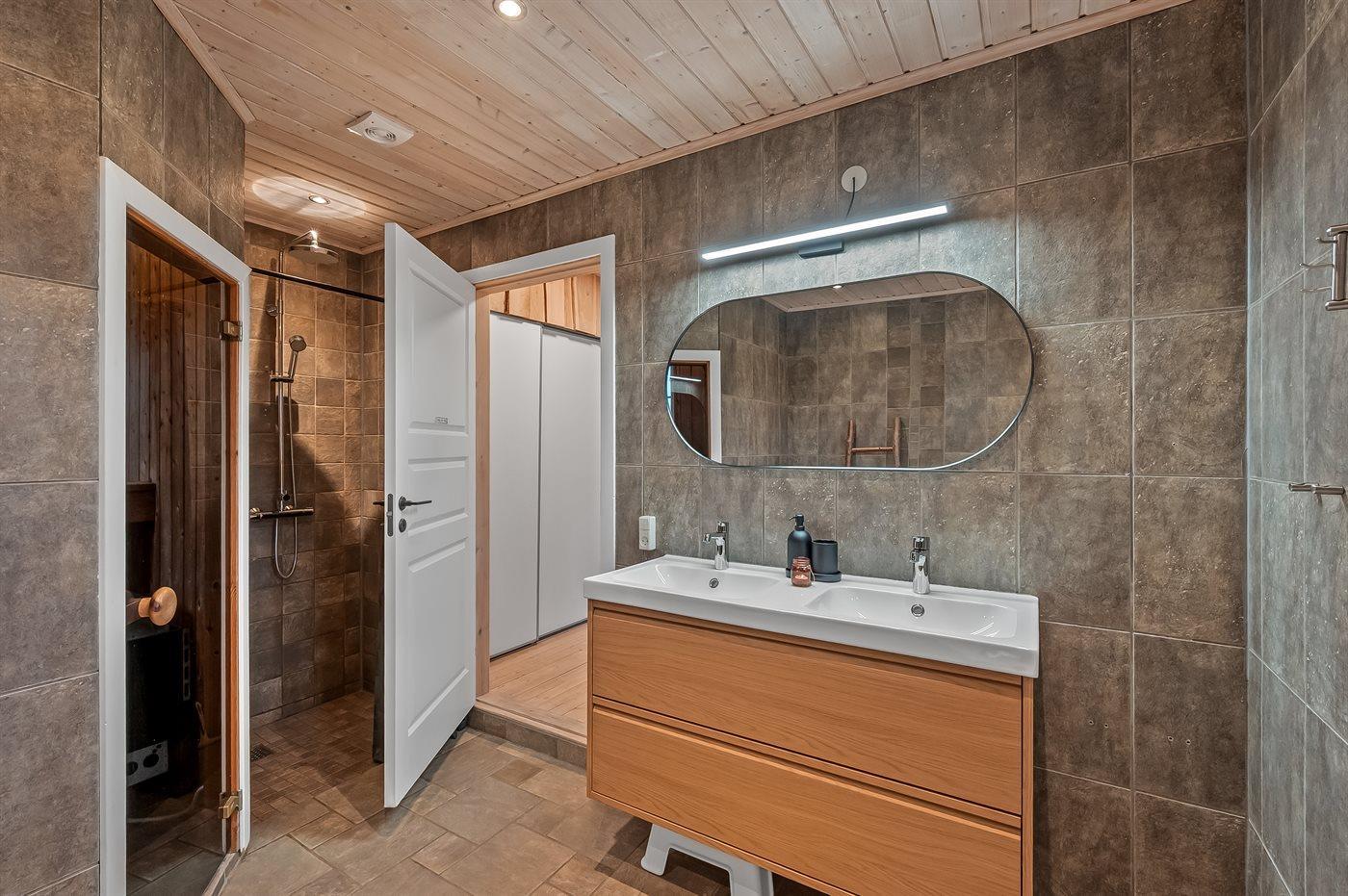 Es gibt 2 Badezimmer mit Duschnische und 2 Toiletten. Fußbodenheizung in 2 Badezimmern. Es steht eine Sauna zur Verfügung in der Sie sich so richtig entspannen können.