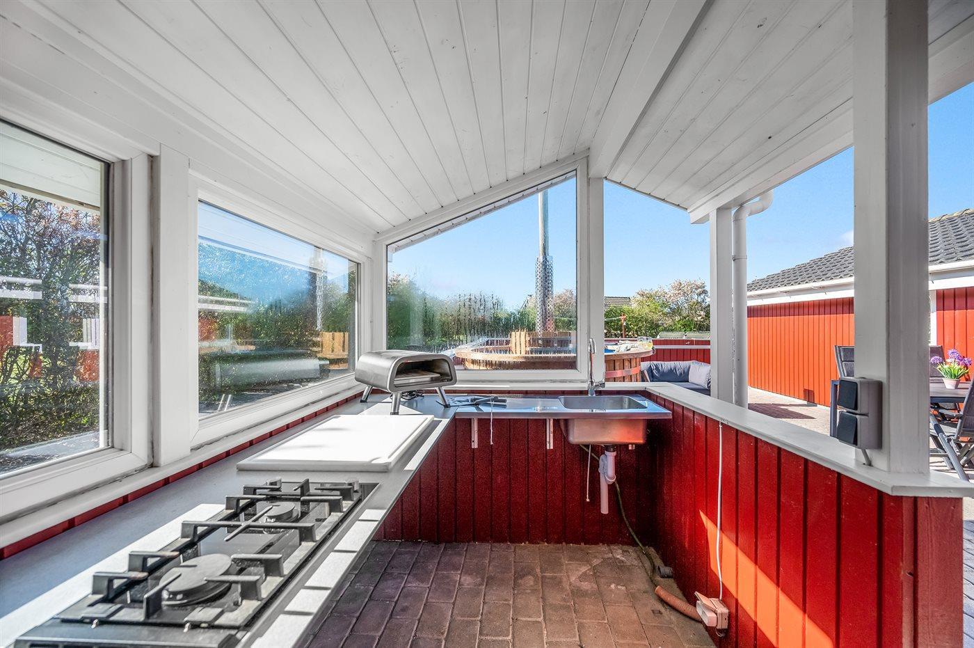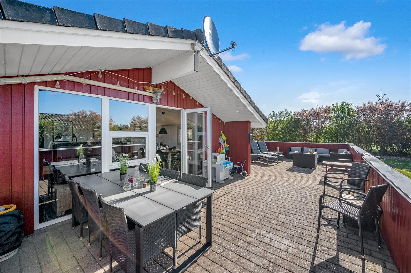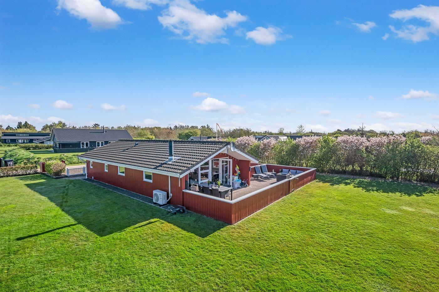 Die Ferienunterkunft liegt auf einem 1204 m² großen Naturgrundstück. Das Grundstück ist eingezäunt. Die Entfernung zum Meer beträgt 9000 m. Die Entfernung zum Fjord beträgt 1000 m. Die nächste Einkaufsmöglichkeit liegt 1500 m entfernt. In einem Abstand von 15000 m gibt es einen Golfplatz. Es steht ein offenes Terrassenareal zur Verfügung. Außerdem gibt es überdachte Terrasse. Geräteraum. Schaukel. Sandkasten. Kinderspielhaus. Trampolin. Rutsche. Fußballtor. Die Entfernung zu einem Spielplatz beträgt 170 m.Es beteht die Möglichkeit das Essen in der Außenküche zuzubereiten. Es steht ein Grill zur Verfügung. Parkplatz auf dem Grundstück.