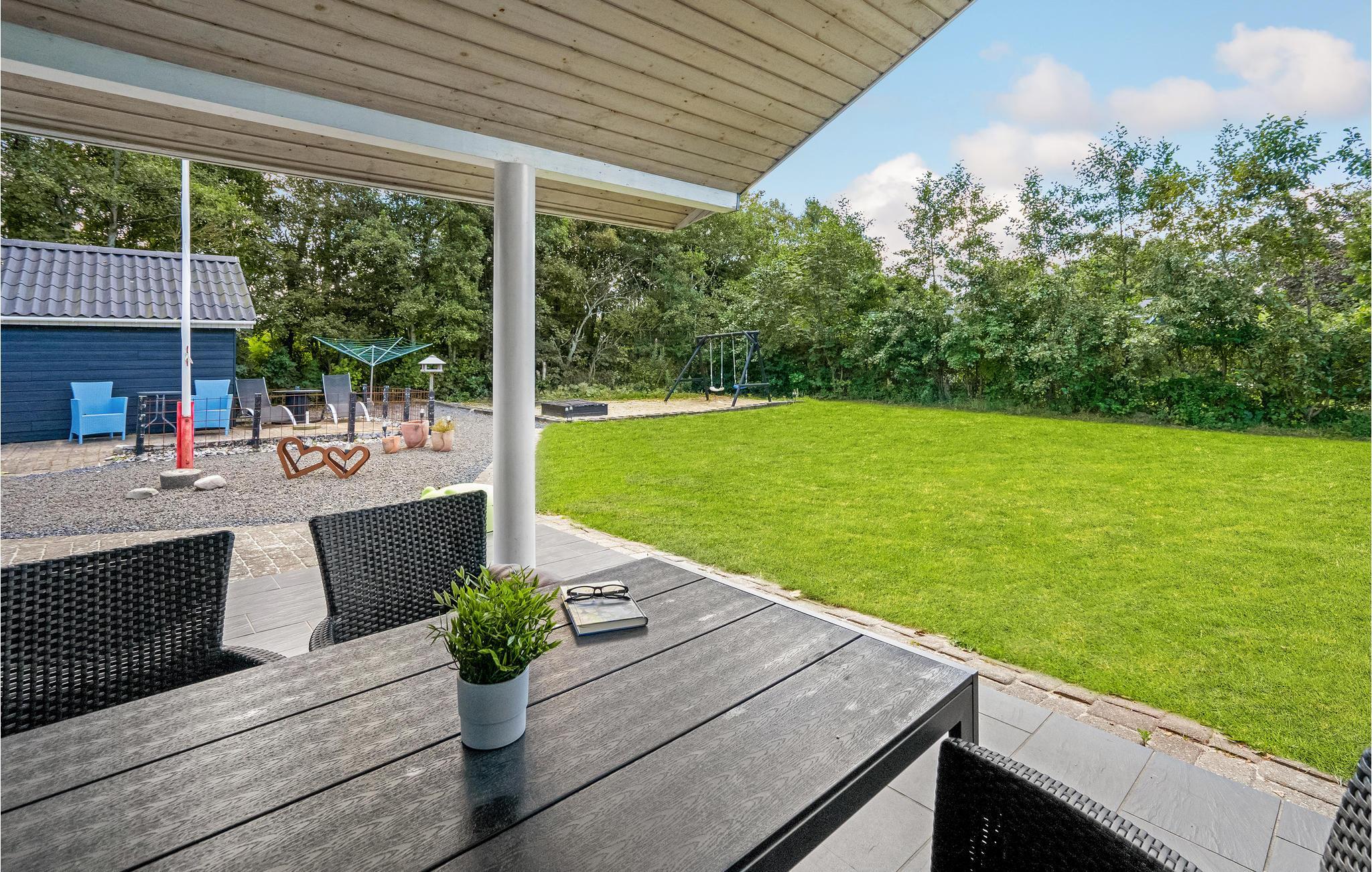 Ein einladendes, energieeffizientes Ferienhaus mit großer, überdachter Terrasse in Hemmet, nahe Ringkøbing Fjord und familienfreundlichen Stränden.
