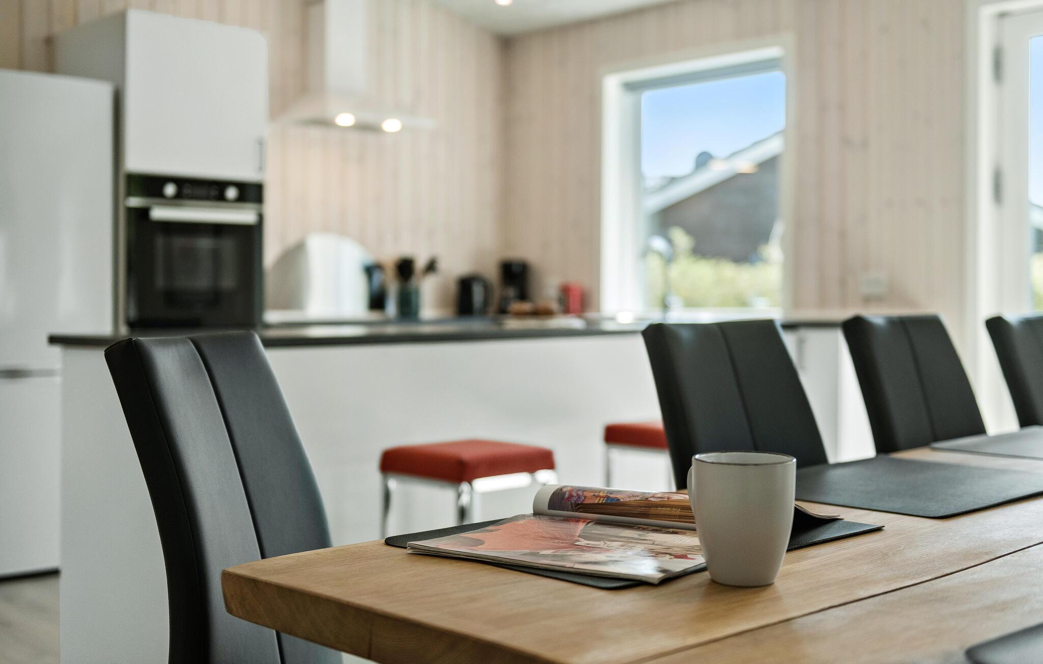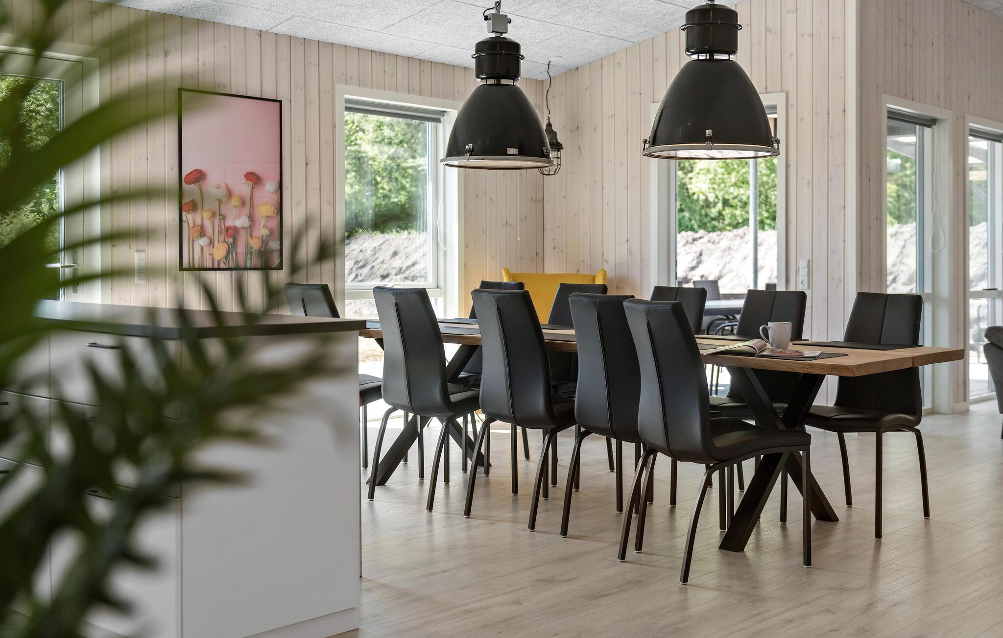 Ihr modernes Ferienhaus in einer ungestörten Lage bietet Ihnen einen erholsamen Aufenthalt mit vielen schönen Annehmlichkeiten in Bork Havn am Ringkøbing Fjord. Treten Sie ein und genießen Sie die hellen, luftigen Räume mit großen Fenstern, die Ihnen einen wunderbaren Blick nach draußen ermöglichen. Die stilvollen Sofas und der einladende Essbereich schaffen eine gemütliche Atmosphäre.