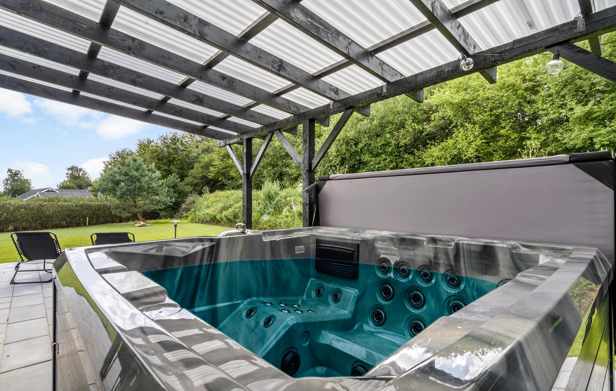 Verbringen Sie die sonnigen Tage auf der großzügigen Terrasse, die mit bequemen Liegestühlen und Gartenmöbeln ausgestattet ist. Noch mehr entspannen können Sie sich mit der ganzen Familie in Ihrem großzügigen Außen-Whirlpool. Und veranstalten Sie abends vergnügliche Grillabende unter freiem Himmel.