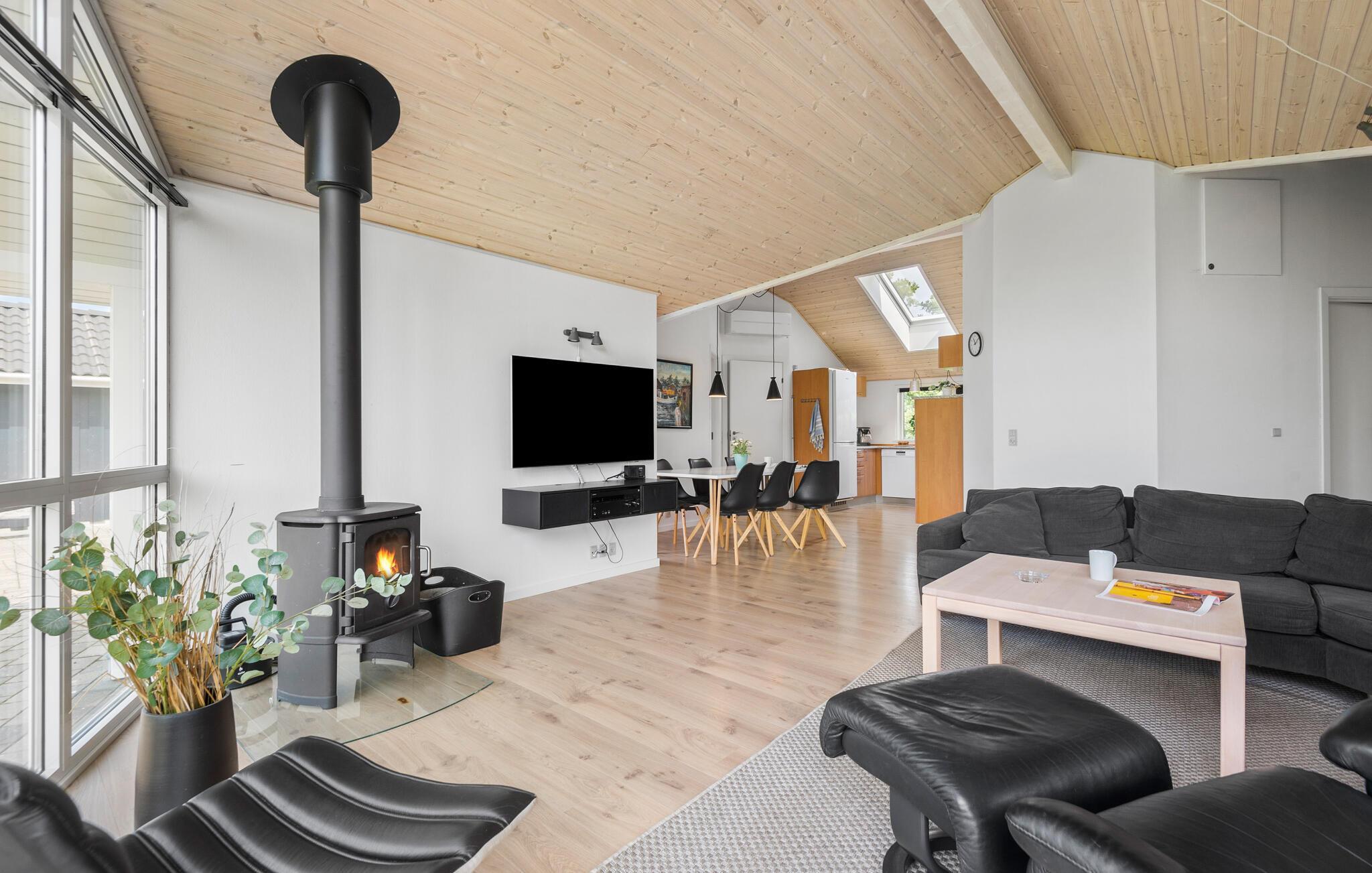 Verbringen Sie Ihren Urlaub in diesem klassischen Ferienhaus am südlichen Ende des Ringkøbing Fjords. Die Umgebung ist geprägt von ruhiger Atmosphäre, einem kleinen Jachthafen, schönen Wandermöglichkeiten mit einem ausgebauten Wegenetz entlang des Wassers und mehreren Spielplätzen. Beginnen Sie den Tag mit einem Frühstück im großzügigen Wohnbereich, der mit einer breiten Fensterfront, einem großen Sofa und dem Kaminofen für Wohlfühlmomente sorgt. Genießen Sie die Zeit mit einem guten Buch oder verbringen Sie einen gemütlichen Filmabend mit der Familie. Bereiten Sie in der offenen, funktionalen Küche gemeinsam Ihre Lieblingsgerichte zu. Gönnen Sie sich anschließend erholsame Stunden im privaten Wellnessbereich mit Sauna und Whirlpool, ideale Orte, um die Seele baumeln zu lassen.