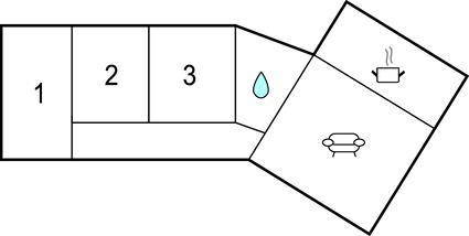 Badezimmer (nr. 1) - WC. Warmes und kaltes Wasser. Dusche