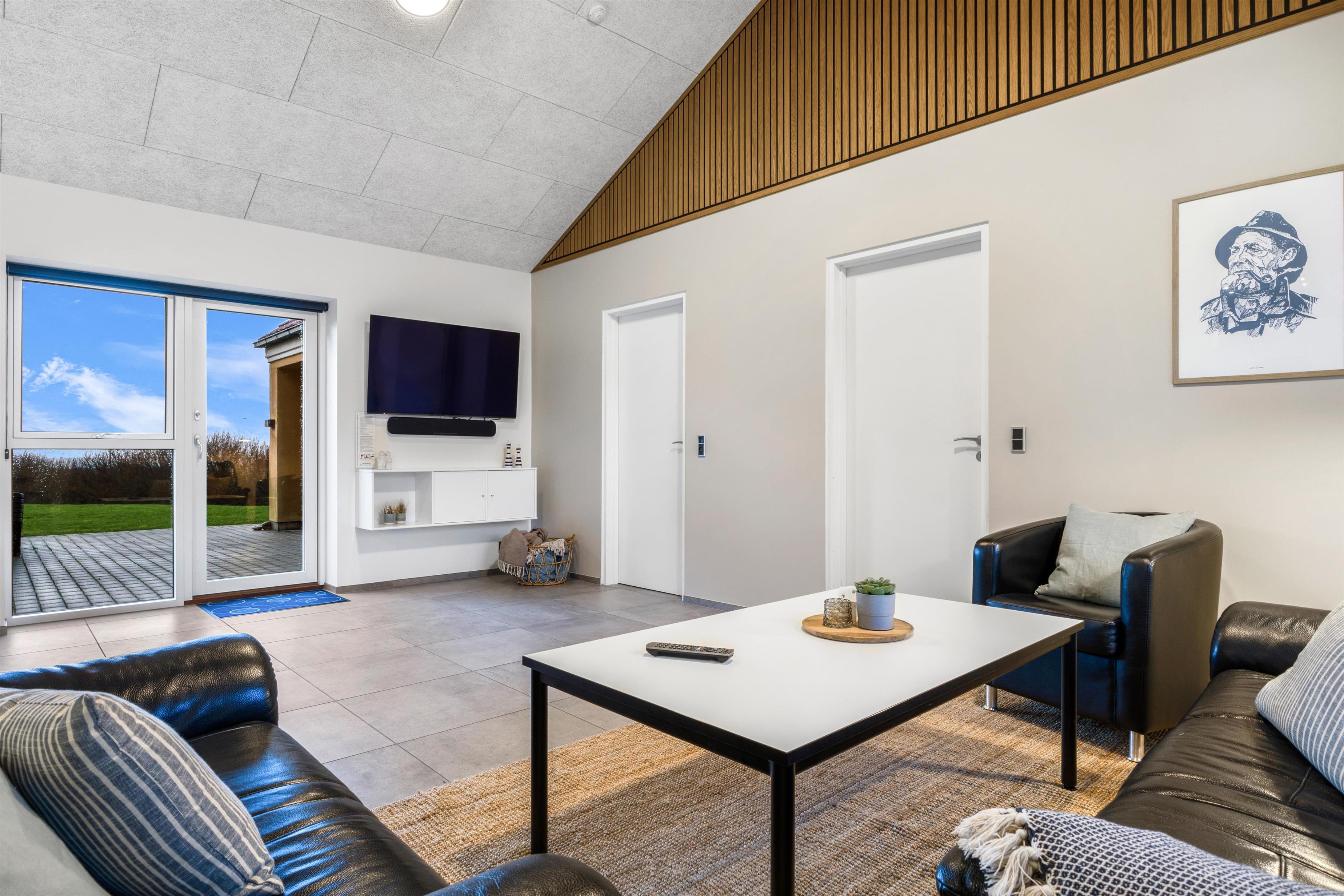 Auf dem 2500 m² großen Grundstück gibt es viel Platz und auf der herrlichen Terrasse gibt es viele Möglichkeiten für einen Platz in der Sonne oder im Schatten, da ein Teil der Terrasse teilweise überdacht ist. Es gibt natürlich Gartenmöbel und Sonnenliegen sowie einen Grill. Wie wäre es mit einem Ausflug in den Whirlpool im Freien der sich auch auf der Terrasse befindet, was das Erlebnis einzigartig macht, insbesondere an dunklen Abenden mit klarem Sternenhimmel, ein einzigartiges Erlebnis - eine reine Therapie für Seele und Körper - oder vielleicht ein frisches Bad in der Nordsee, dann nach Hause und ab in die Außensauna. Das Haus liegt in der Nähe des Jens Søndergårds Museums und nicht weit vom Leuchtturm von Bovbjerg entfernt. Genießen Sie einen fantastischen Spaziergang oder Lauf auf dem Weg, der direkt am Rande des Bovbjerg Klint mit Blick auf die Nordsee angelegt ist. Erleben Sie, dass die Nordsee jeden Tag eine neue Geschichte erzählt. Besuchen Sie die vielen Attraktionen und Erlebnisse, die innerhalb von maximal 30 Minuten erreicht werden können. Oder besuchen Sie das Fischerdorf Thyborøn oder die schöne Handelsstadt Lemvig mit vielen Fachgeschäften. Das perfekte Haus für maximal 14 Personen in einer einzigartigen Moränenlandschaft, die viele Hügel, Möglichkeiten und Romantik bietet.