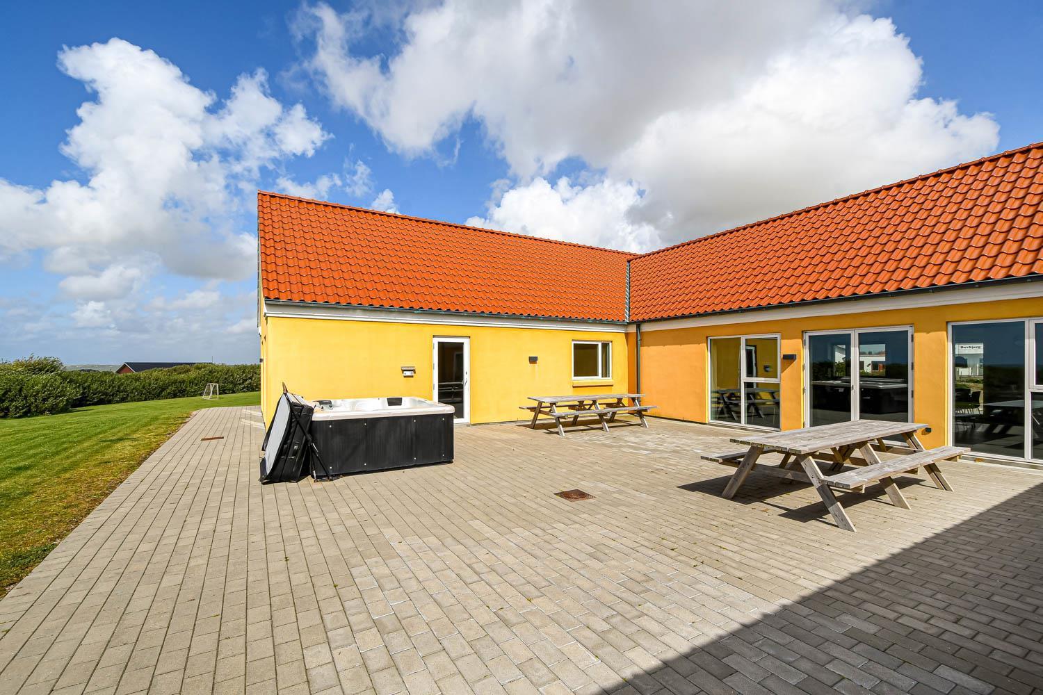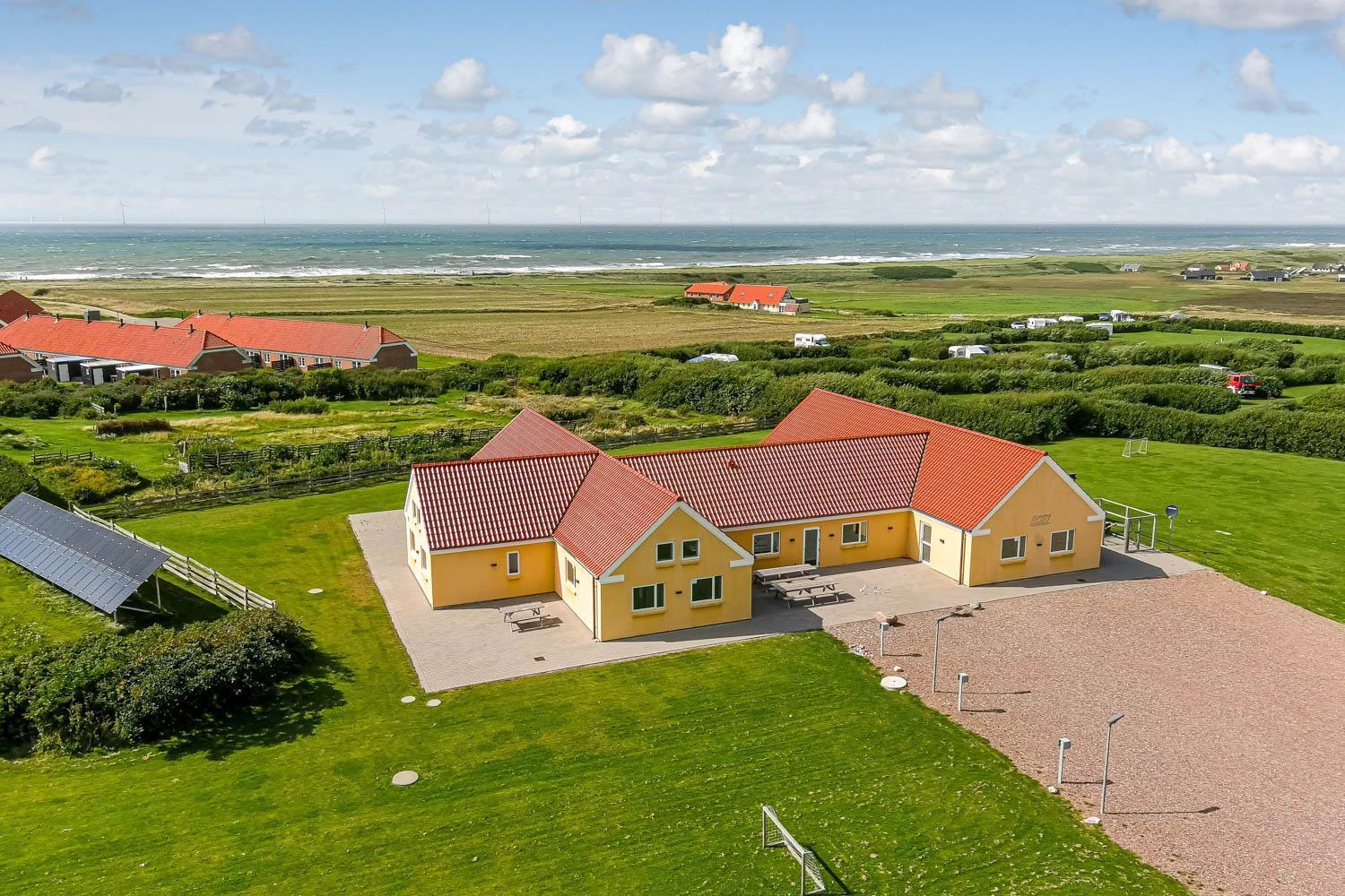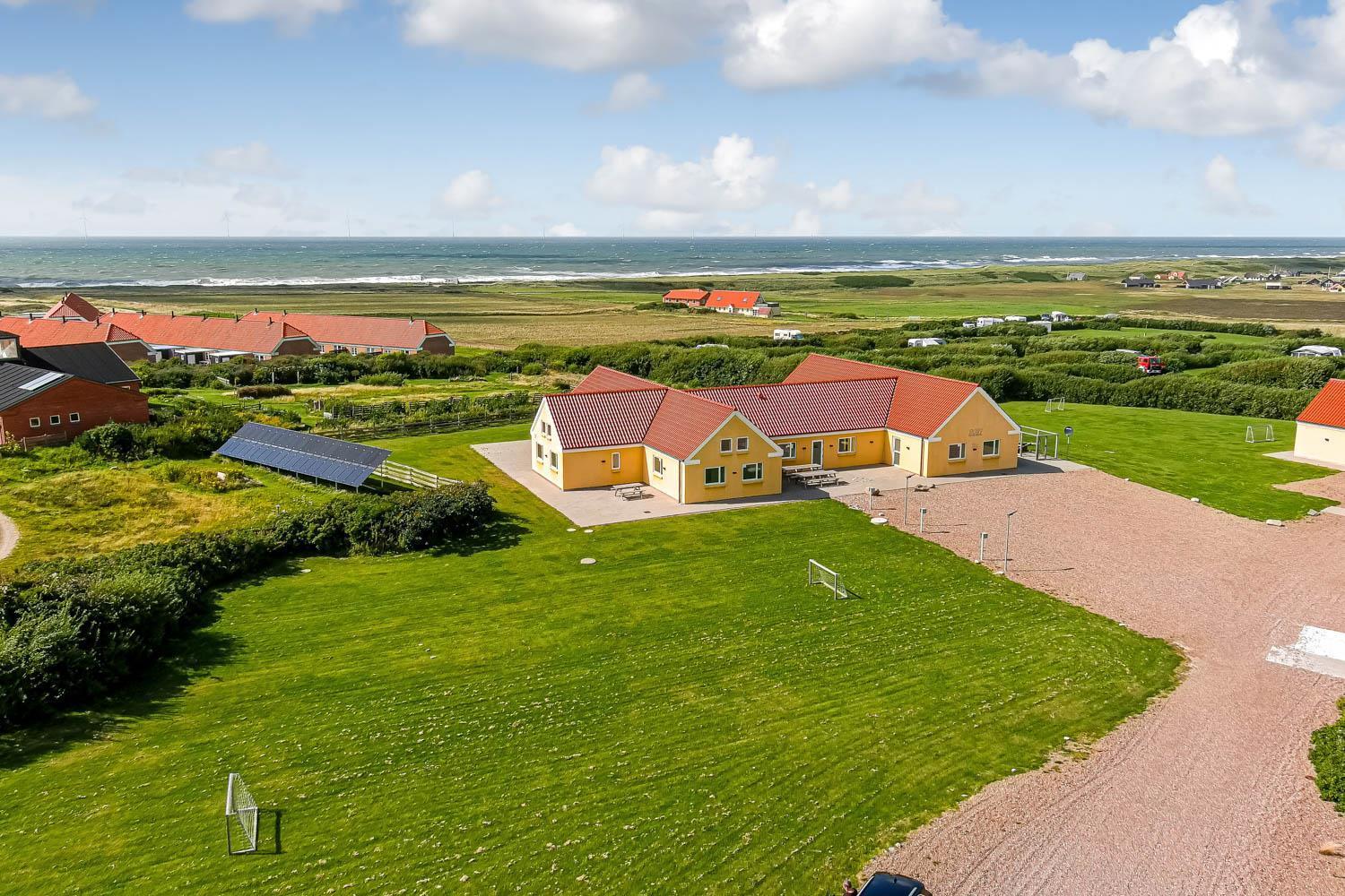 Auf dem 8.600 m2 großen Grundstück ist viel Platz und auf der herrlichen Terrassenanlage gibt es viele Möglichkeiten für einen Platz in der Sonne oder vielleicht auch im Schatten, da die Anlage u.a. 38 m2 Terrasse enthält, die überdacht ist. Auch hier ist die Aussicht einmalig und an vieles gedacht. Großer fester Grill, viele Gartenmöbel und Sonnenliegen und auch an die Vierbeiner, die eine eigene Hundehütte haben, wird gedacht. Wie wäre es mit einem Fußball auf dem eigenen Fußballplatz neben dem Haus. Die Nutzung des Outdoor-Spa in der Ecke der Terrasse macht das Erlebnis an den dunklen Abenden mit dem klaren Sternenhimmel einzigartig und besonders. Ein einzigartiges Erlebnis, die pure Therapie für Geist und Körper . Das Haus liegt in der Nähe des Jens Søndergårds Museums und nicht weit vom Leuchtturm Bovbjerg. Genießen Sie einen fantastischen Spaziergang oder laufen Sie auf dem Weg, der direkt am Rande des Bovbjerg Klint mit einem einzigartigen Blick auf die Nordsee angelegt ist. Erleben Sie, dass die Nordsee jeden Tag eine neue Geschichte erzählt. Besuchen Sie die vielen Attraktionen und Erlebnisse, die innerhalb von max. 30 Minuten zu erreichen sind, oder besuchen Sie das Fischerstädtchen Thyborøn oder das schöne Handelsstädtchen Lemvig mit vielen Fachgeschäften. In den Sommermonaten können Sie auf Bovbjerg Camping die nötigsten Einkäufe tätigen. Das perfekte geräumige Haus für 32 Personen in einer einzigartigen Moränenlandschaft, die viele Hügel, Möglichkeiten und Romantik bietet.