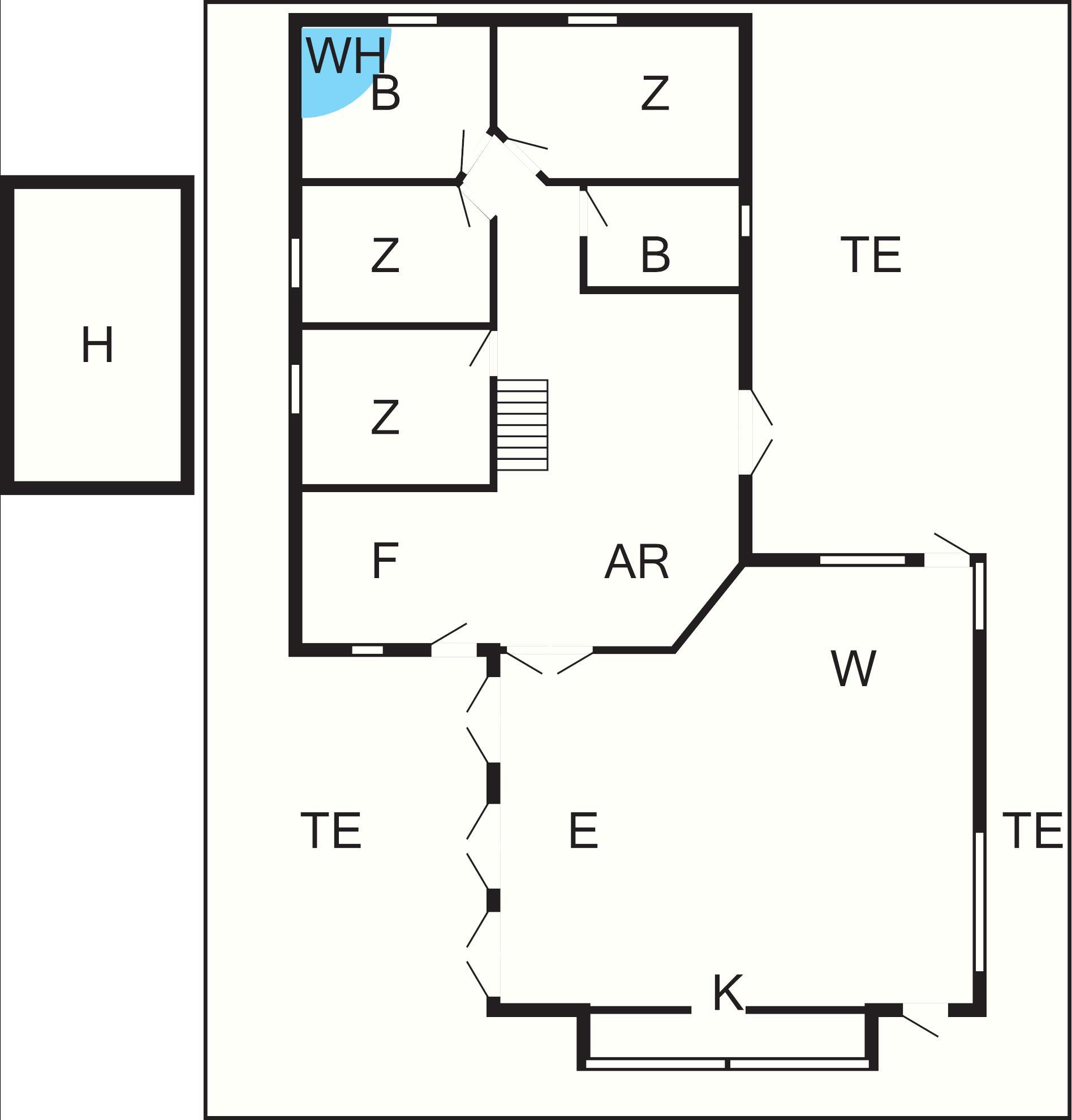 Bad: WC, Waschb., Dusche, Fußbodenheiz.