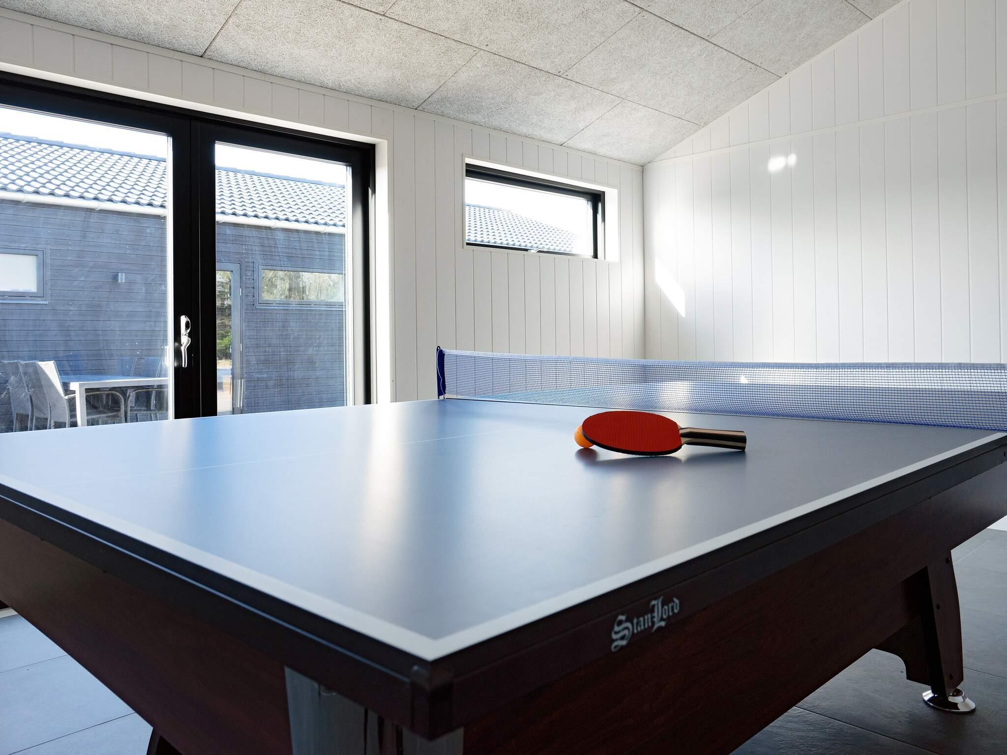 Das Nebengebäude ist ein beliebter Treffpunkt für die Kleinsten. Der helle Aktivitätsraum mit Darts, Billardtisch und Tischtennisplatte ist der perfekte Ort für Spiel und Spaß. Direkt daneben befinden sich die Sauna und die Außendusche des Ferienhauses.