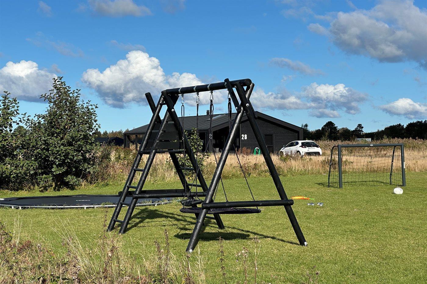 Die Ferienunterkunft liegt auf einem 2594 m² großen Naturgrundstück. Die Entfernung zum Meer beträgt 900 m. Die nächste Einkaufsmöglichkeit liegt 4000 m entfernt. Es steht ein offenes Terrassenareal zur Verfügung. Außerdem gibt es überdachte Terrasse. Geräteraum. Schaukel. Trampolin. Fußballtor. Außendusche. Es steht ein Grill zur Verfügung. Es ist ein Ladestecker für Elektroautos installiert. Mit einer Ladeleistung von 11 kW. Parkplatz auf dem Grundstück.
