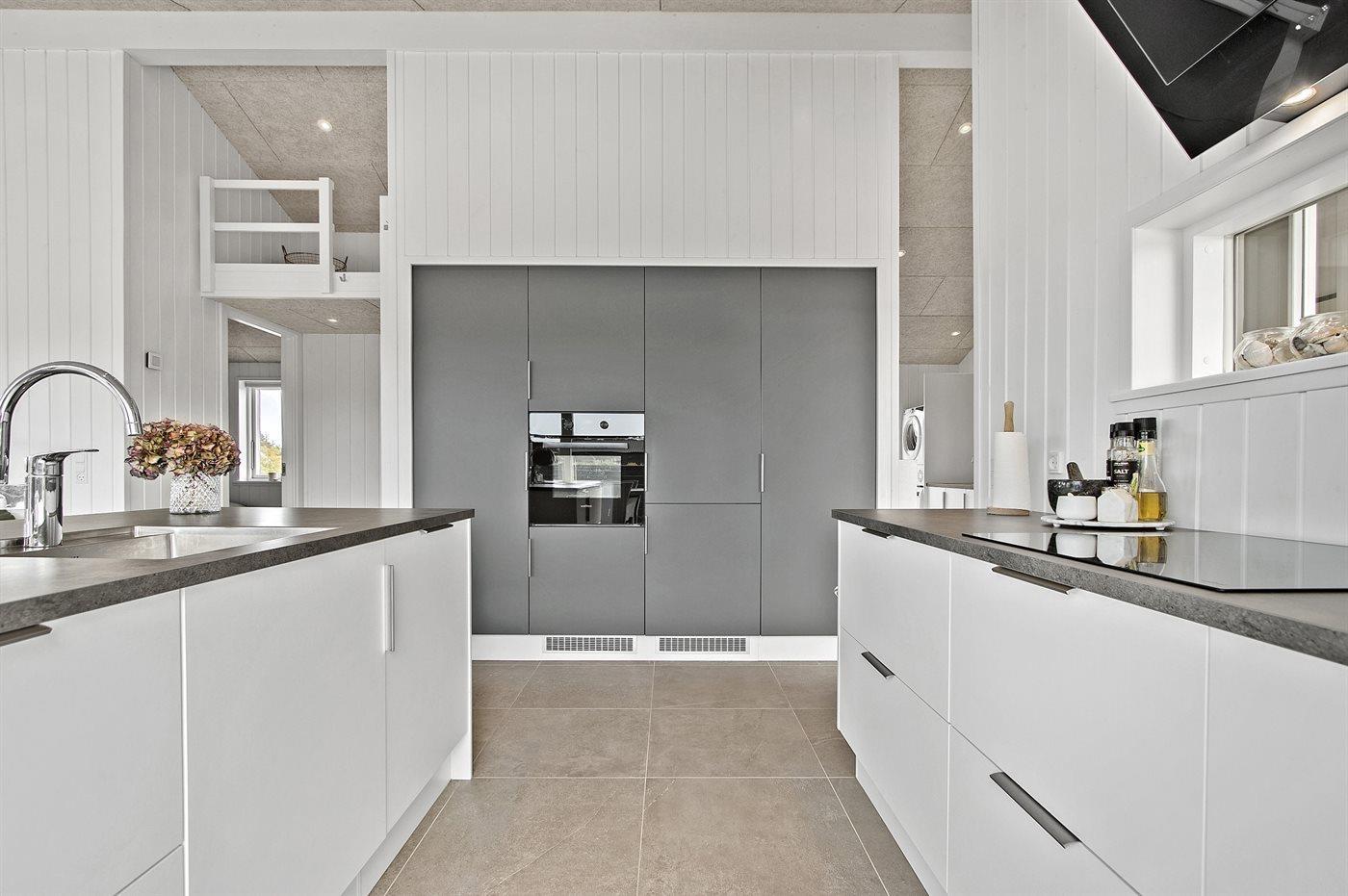 Die Küche ist gut ausgestattet und hat 1 Kühlschrank. Außerdem gibt es 4 Induktions-Kochzonen, Umluftofen, Mikrowelle sowie Geschirrspüler.