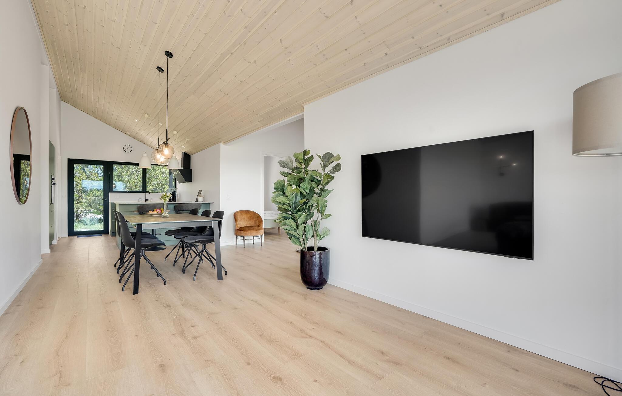 Hier sind Architektenträume wahr geworden - willkommen in Ihrem einzigartig stilvollen Ferienhaus. Überall spüren Sie, dass bei der Ausstattung auf das gewisse Etwas geachtet wurde. Genießen Sie das offene Wohnkonzept mit gemütlichen Sitzgelegenheiten und Blick auf die umliegende Landschaft. In stilvollem Ambiente ist alles dafür ausgerichtet, Ihnen und Ihrer Urlaubsgesellschaft Ruhe und Erholung zu bieten. Des weiteren können Sie es sich auf den Sonnenliegen gemütlich machen während Sie Ihre kostbare Zeit in einen fesselnden Roman investieren und Ihre Kinder sich auf der Grünfläche vergnügen.