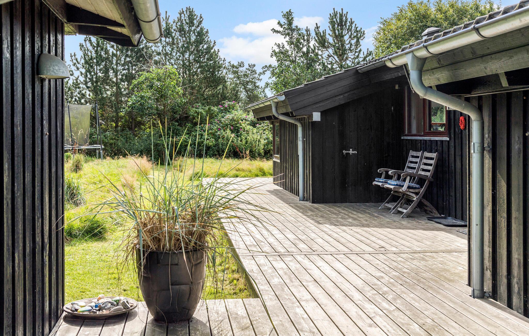 In der Nähe vom tollen Sandstrand finden Sie dieses komfortabel ausgestattete Ferienhaus in grüner Lage. Das Herzstück des Hauses bildet der geräumige, offene Wohnraum mit Fensterfront und einer hellen, angenehmen Atmosphäre. Genießen Sie die Urlaubsmahlzeiten in geselliger Runde am Esstisch und verbringen Sie gemütliche Abende bei einem guten Film oder einem Brettspiel mit den leisen Geräuschen des Kaminofens im Hintergrund. Draußen lädt die großzügige Holzterrasse zu ruhevollen Sommertagen ein, während die Kinder und Vierbeiner sich auf der Grünfläche austoben.