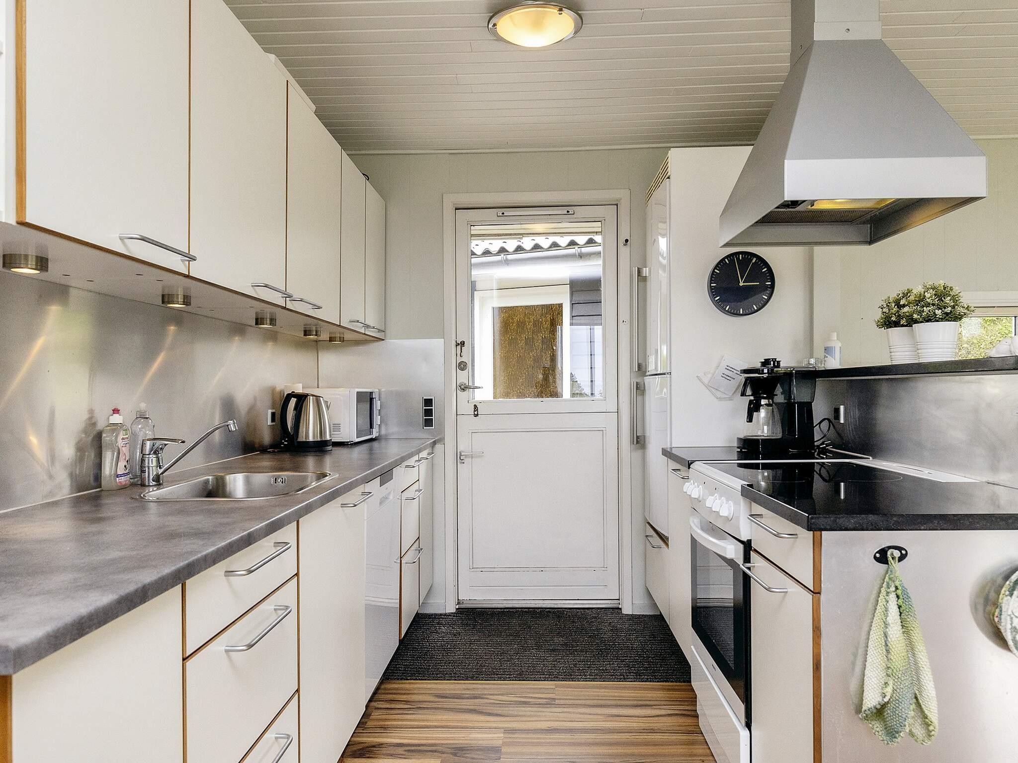 Das Ferienhaus verfügt über eine offene Küche in Verbindung mit einem Wohnzimmer, das Zugang zur Terrasse hat, von wo aus Sie Meerblick. Draußen auf der überdachten Terrasse haben Sie die Möglichkeit, unabhängig vom Wetter die schöne Umgebung und die frische Luft zu genießen. Mit einem Holzkohlegrill ergeben sich perfekte Möglichkeiten für gemütliche Grillabende und geselliges Beisammensein. Darüber hinaus ist das Ferienhaus mit einem doppelten Carport ausgestattet, der praktisches Parken und Schutz für Ihre Autos bietet.
