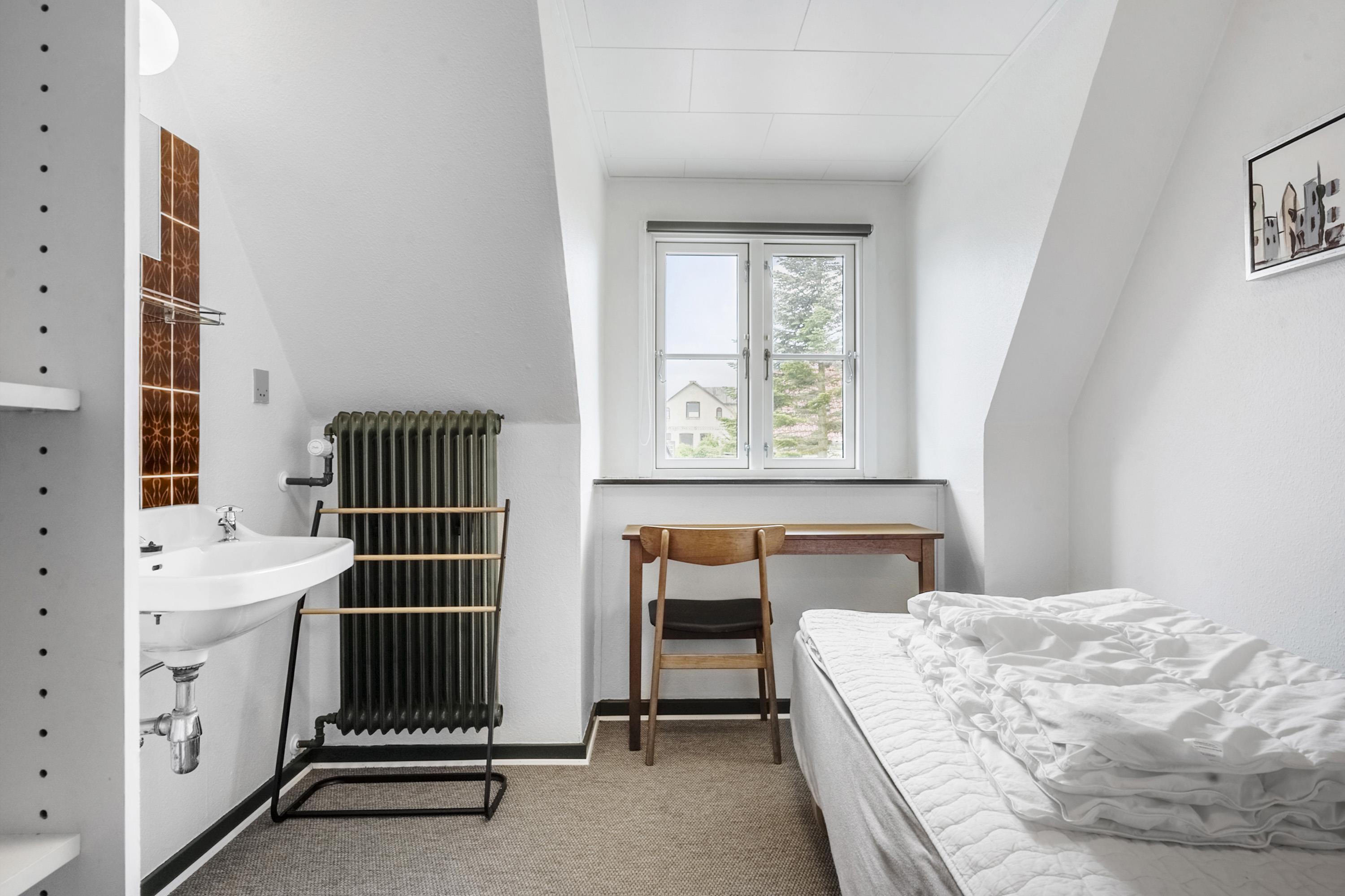 Der 1. Stock ist eingerichtet mit den übrigen 10 Schlafräumen mit Doppelbetten sowie mit 2 Badezimmern. Im Kellergeschoss befindet sich ein Konferenzraum für 45 Personen. Vom Wohnzimmer aus gibt es direkten Zugang zur 150 m2 großen Aussichtsterrasse, von der aus man den Ausblick auf die Förde und den Garten genießen kann. Von der Küche aus gibt es Zugang zu einer überdachten Terrasse. Man kann sich auch auf dem 5500 m2 großen Grundstück aufhalten, das sich bis zur Förde mit dem kinderfreundlichen Strand erstreckt.