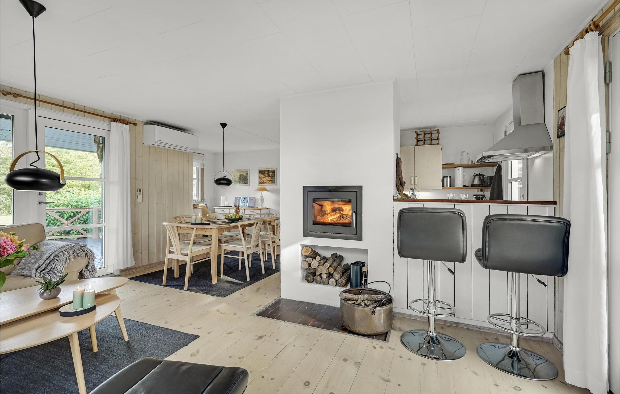 Gemütliches Haus mit einer schönen Terrasse, die das gesamte Haus umgibt. Das Haus ist bietet Platz für insgesamt 6 Personen und die Schlafmöglickeiten verteilen sich auf 2 Zimmer im Haupthaus und ein weiteres im behaglichen Annex. Die Küche ist zum Wohnraum hin offen. Für Unterhaltung sorgen ein Kicker und viel Platz zum Spiele spielen oder entspannen.