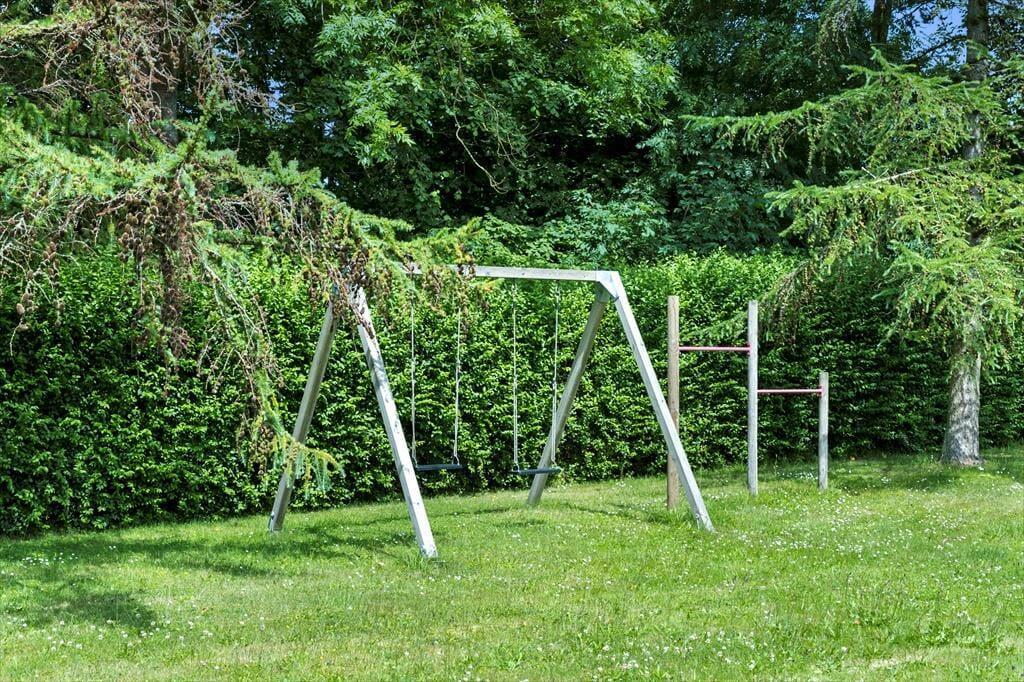 Draußen erwartet Sie ein großer, grüner Garten – ideal zum Entspannen oder Spielen. Kinder freuen sich über Schaukel und Sandkasten, während die Erwachsenen die Terrasse genießen können, sei es mit einem Buch in der Hand oder beim Grillabend an lauen Sommerabenden. Angler werden den überdachten Fischreinigungsplatz zu schätzen wissen, an dem der Fang des Tages vorbereitet werden kann, bevor er auf den Grill oder in den Gefrierschrank kommt. Hier erleben Sie das Ferienhausleben ganz nah an der Natur – mit Vogelgesang und dem Rauschen der Wellen im Hintergrund.