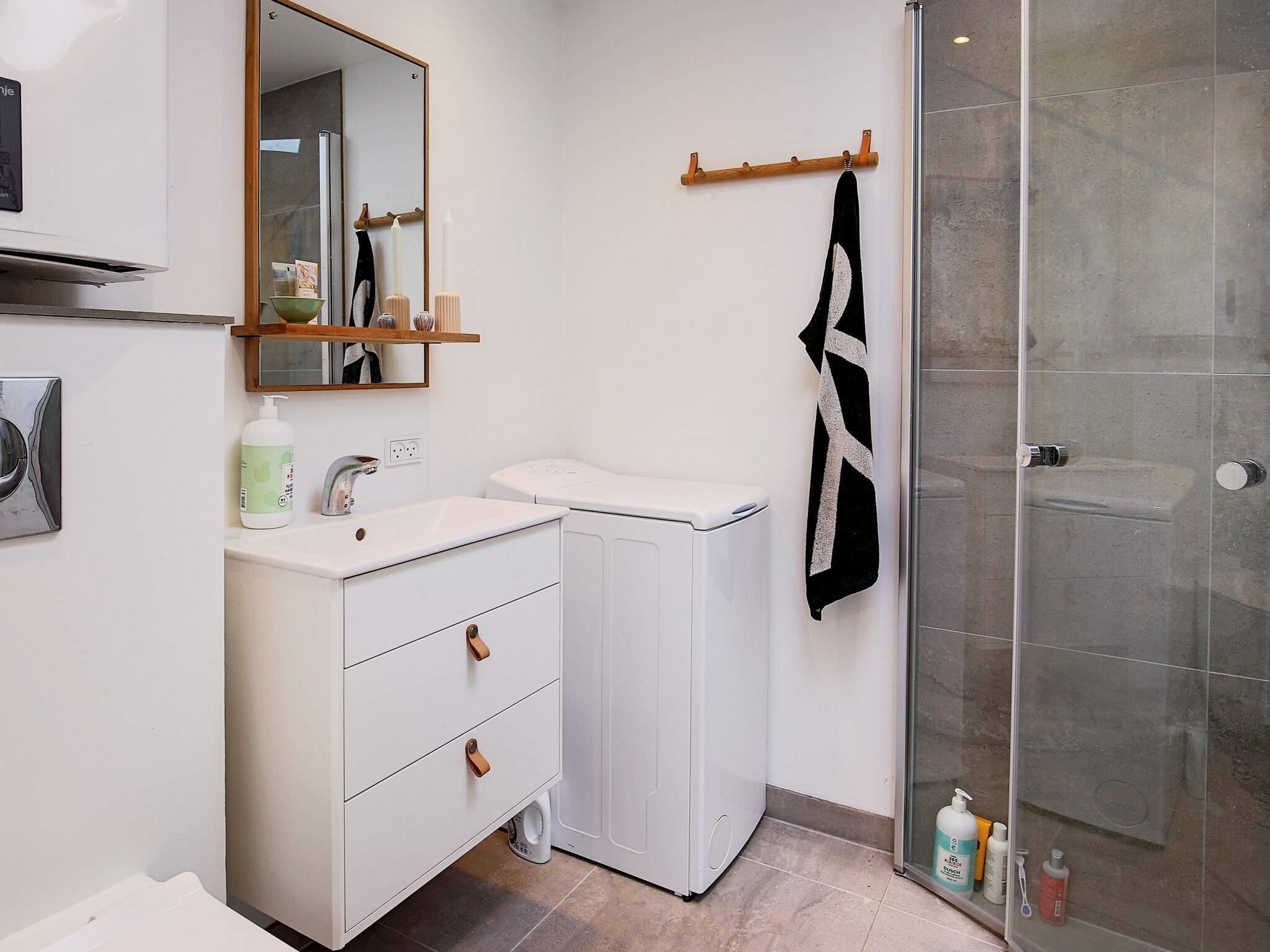 Das Badezimmer im Haus wurde für die Saison 2020 saniert und u.a. mit angenehmer Fußbodenheizung ausgestattet. Es stehen auch zwei Schlafzimmer bereit: eines mit erhöhtem Doppelbett mit Schubladen zur Aufbewahrung dadrunter, das zweite mit Etagenbett mit doppelter Liegefläche unten.