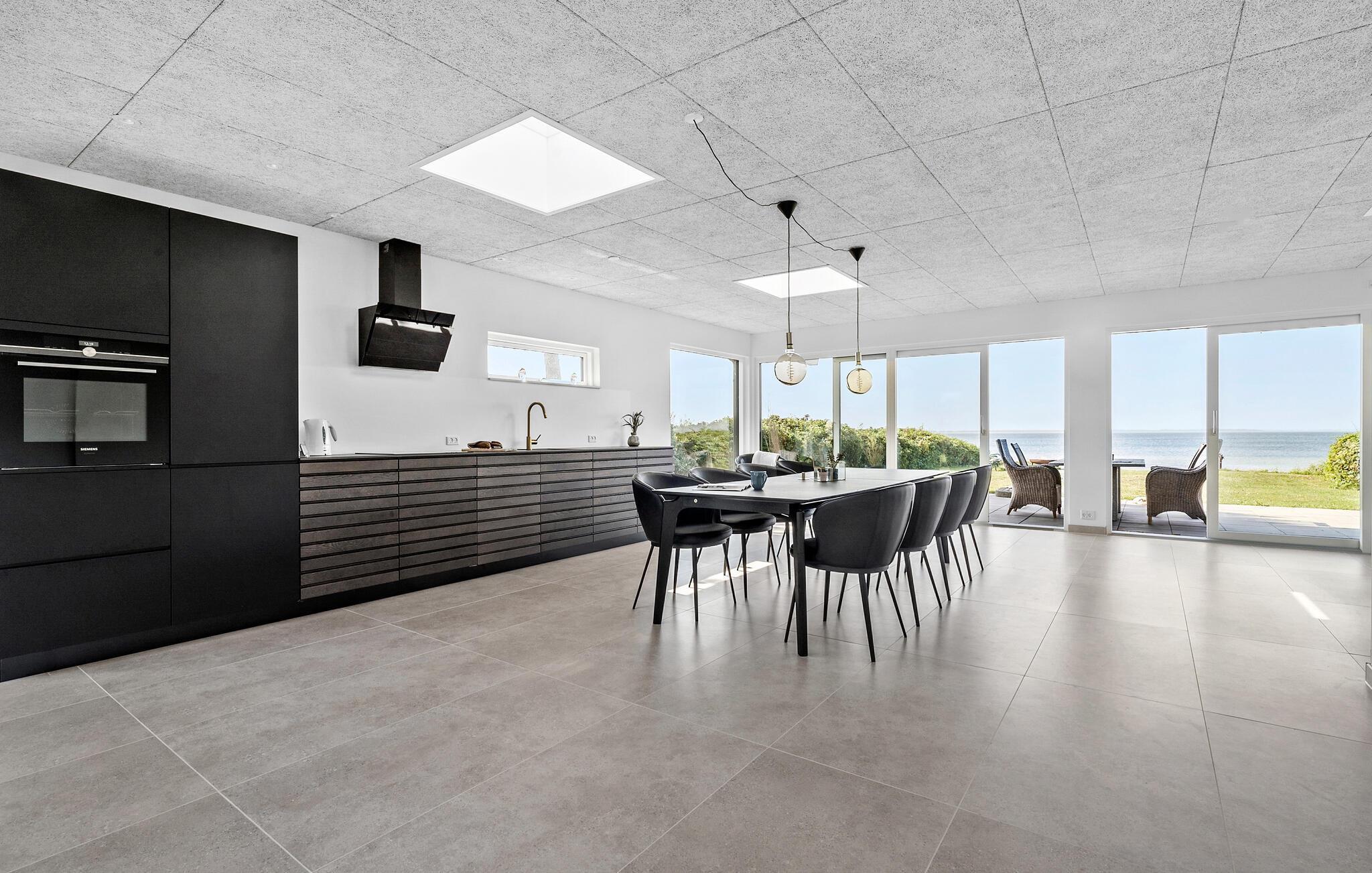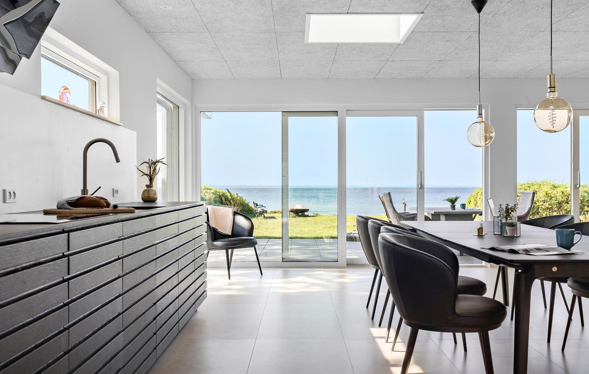 Verbringen Sie unvergessliche Tage auf dem wunderschönen Nordfünen. Dieses architektonisch gestaltete Haus liegt direkt an der ruhigen Dalby-Bucht und besticht durch exklusive Details, Qualität und Luxus. Der Blick auf das endlose Blau des Meeres begleitet Sie den ganzen Tag, besonders im großzügigen Wohnbereich, der den perfekten Rahmen für Ihren Urlaub bietet.