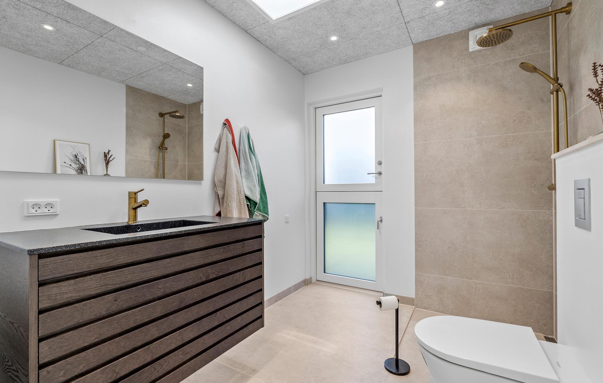Im Außenbereich erwartet Sie ein liebevoll angelegter privater Garten, der direkt zum Wasser führt. Gönnen Sie sich eine erfrischende Abkühlung im Meer und spülen Sie den Sand anschließend unter der Außendusche ab. Mehrere Terrassen laden dazu ein, bei einer Tasse Kaffee die Sonne zu genießen. Während Sie das Abendessen auf dem Grill vorbereiten, können die Kinder auf der Rasenfläche eine Runde Fußball spielen.