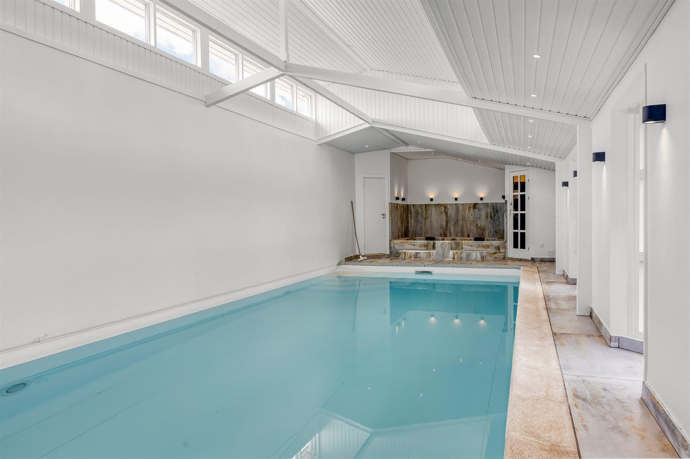 Genießen Sie ein einzigartiges Ferienhaus mit zwei Pools, Meerblick und Whirlpool direkt am kinderfreundlichen Strand von Diernæs.