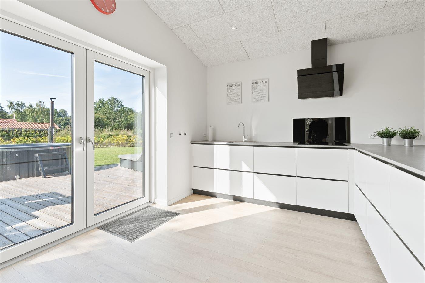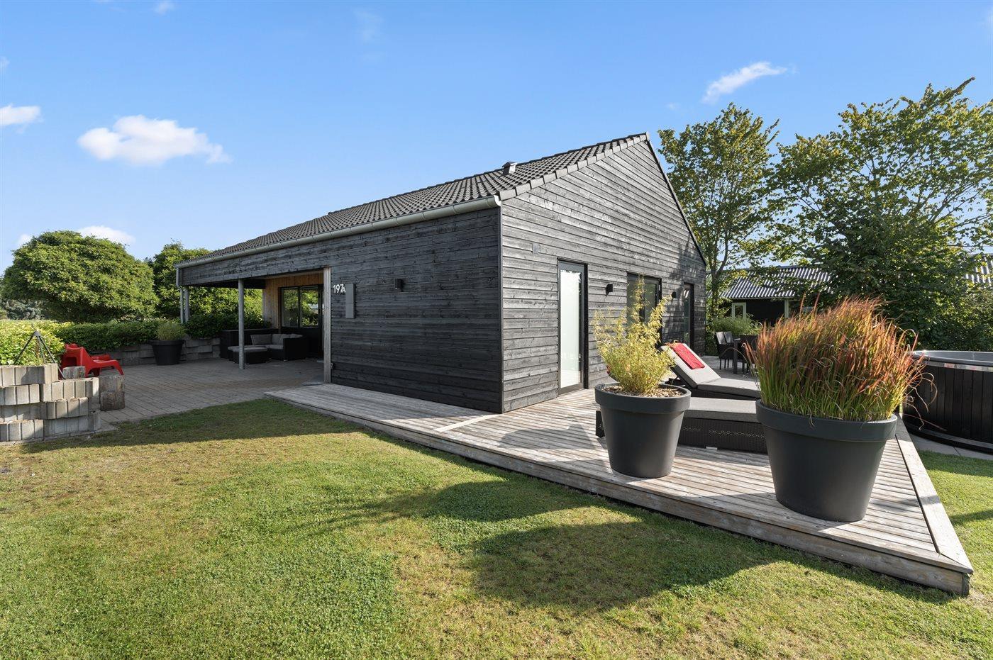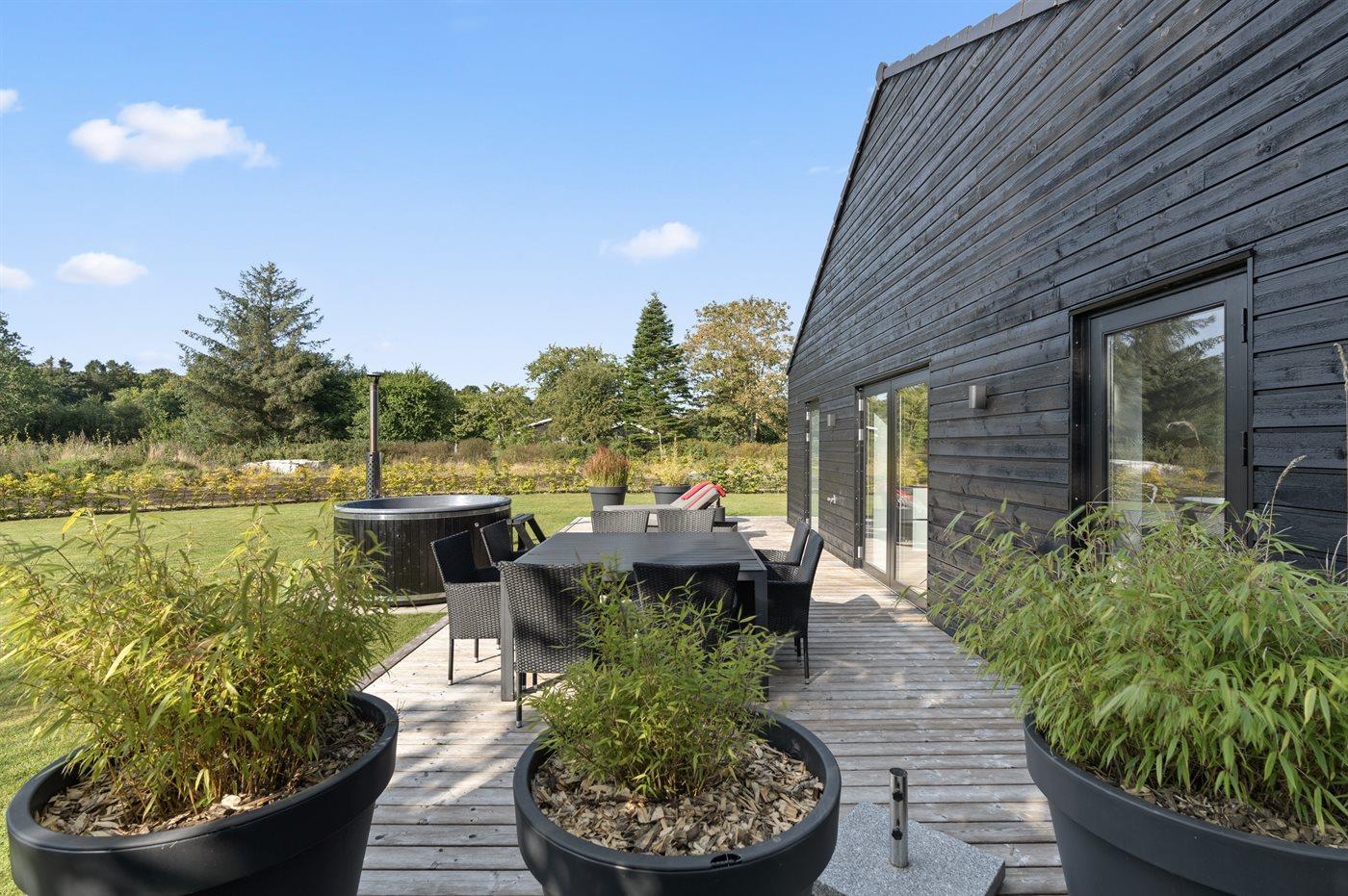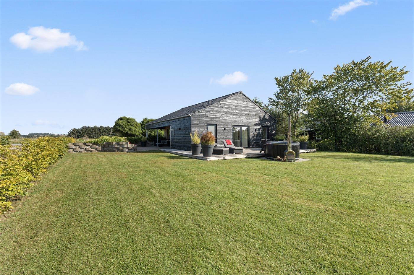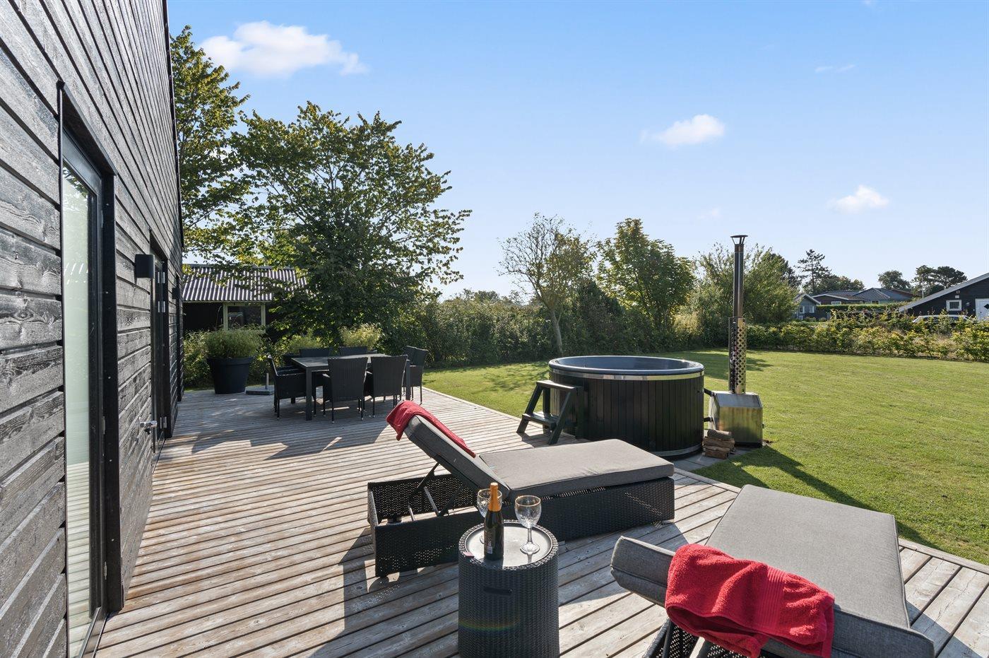 Modernes Ferienhaus mit Hot Tub, großer Terrasse und Strandnähe in Diernæs, Dänemark.