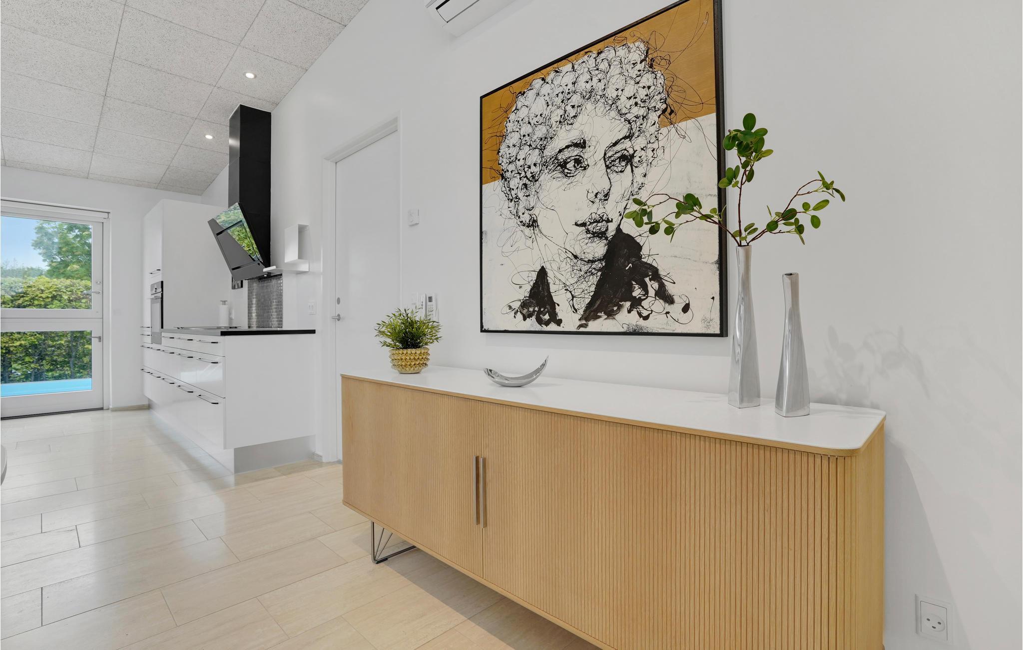 Am schönen Diernæs Strand liegt dieses wunderbare Ferienhaus mit Panoramaaussicht über den Kleinen Belt und Zugang zum friedlichen Sandstrand. Das Haus ist geeignet für Gehbehinderte und auch Rollstuhlfahrer haben hier schon gewohnt. Der Außenpool ist von Mitte Mai bis Ende September (je nach Wetter und Außentemperaturen) geöffnet und wird mit einer Wärmepumpe beheizt. Das ganze Haus ist von Terrassen umgeben, von denen eine überdacht ist und einen schönen Blick auf das Wasser bietet. Drinnen ist die Ausstattung von hoher Qualität und bietet viele Finessen, wie elektrische Jalousien, amerikanischen Kühlschrank und alles, was Sie für einen gelungenen Urlaub brauchen. Genießen Sie die tolle Aussicht und entspannen Sie sich in der Sonne oder im Pool hinter dem Haus.