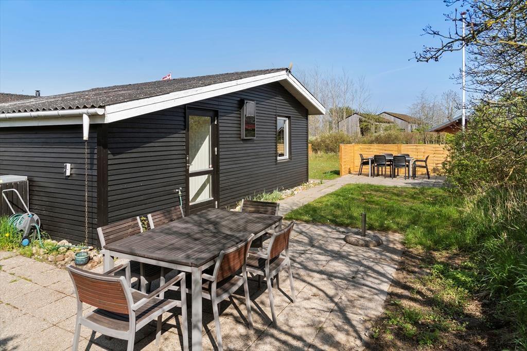 Der Außenbereich rund um das Ferienhaus lädt zum Spielen, Entspannen und zu gemütlichen Momenten mit Ihren Lieben ein. Die große Rasenfläche ist ideal zum Spielen und für Aktivitäten im Freien, während die Terrasse der perfekte Ort für ein Frühstück im Freien oder ein abendliches Grillfest ist. Im Garten können Sie die warmen Sonnenstrahlen genießen, ein gutes Buch lesen oder einfach eine wohlverdiente Pause einlegen. Und was gibt es Schöneres, als einen kurzen Spaziergang zum nahe gelegenen Strand zu machen? Hier können Sie die Sandkörner zwischen Ihren Zehen spüren, dem sanften Plätschern der Wellen lauschen und die Kinder können sich auf dem benachbarten Spielplatz austoben.