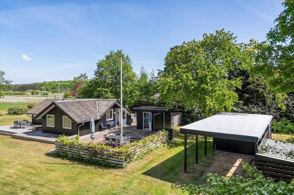 Hier draußen wird das Urlaubsleben so richtig gelebt. Das Ferienhaus ist von einem großen Grundstück umgeben, das reichlich Platz für Spiel, Entspannung und Besinnung bietet. Rund ums Haus verlaufen großzügige Terrassen, die es dir ermöglichen, den ganzen Tag über der Sonne zu folgen – beginne den Tag mit einem Morgenkaffee im Gartenstuhl unter den Baumwipfeln und beende ihn mit einem Glas Wein, während die Abendsonne ihr goldenes Licht über die Landschaft wirft. Die ruhige Umgebung und die großen Außenflächen laden zur inneren Ruhe und zu wertvoller Zeit mit deinen Liebsten ein. Setz dich mit einem guten Buch in den Schatten eines Baumes, lausche der Stille und spüre, wie der Alltag mit jeder Minute in den Hintergrund rückt.