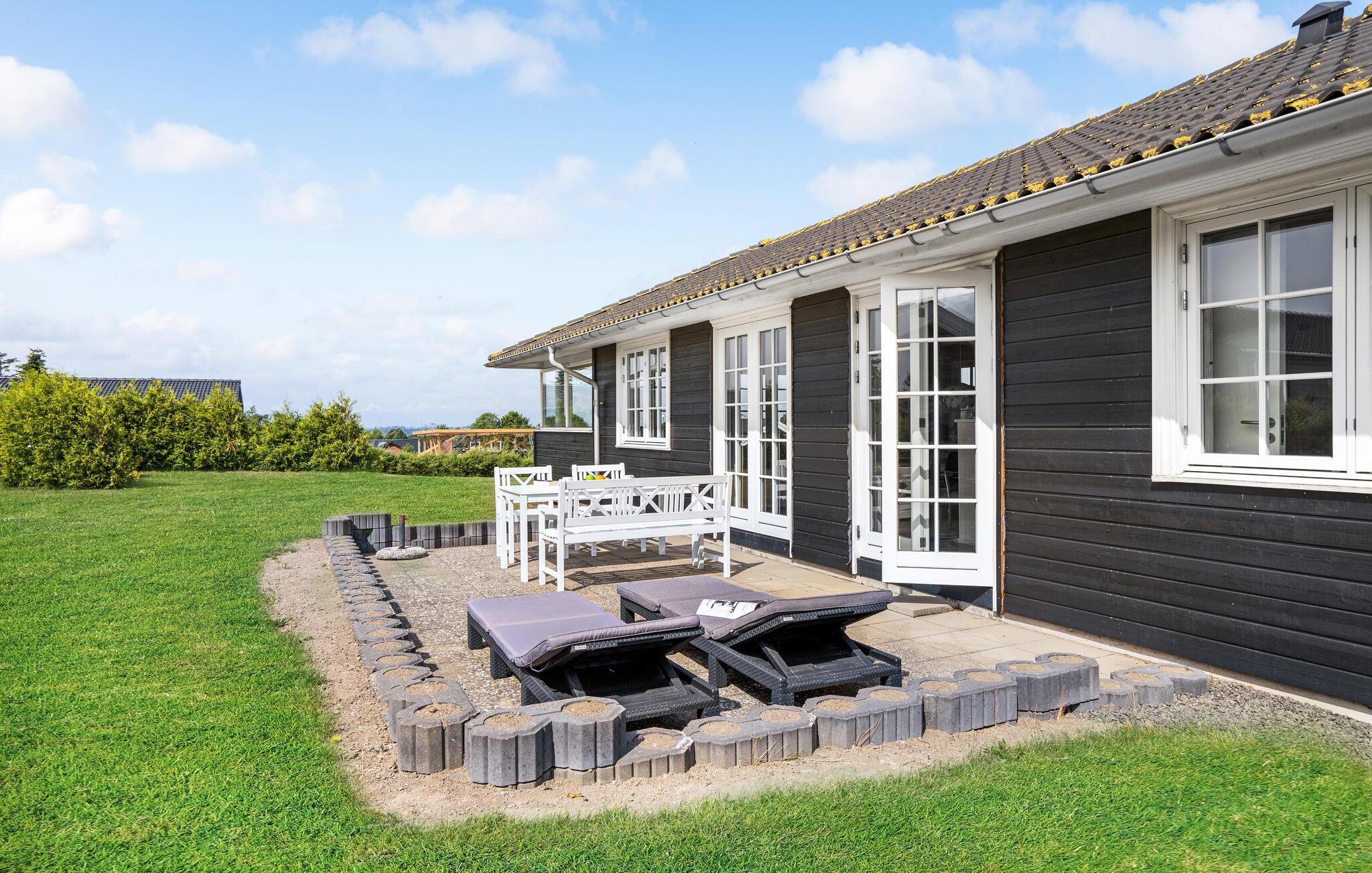 Helles dänisches Sommerhaus mit Terrasse, Holzofen und Nähe zum Strand in Slagelse, ideal für entspannte Urlaubstage.
