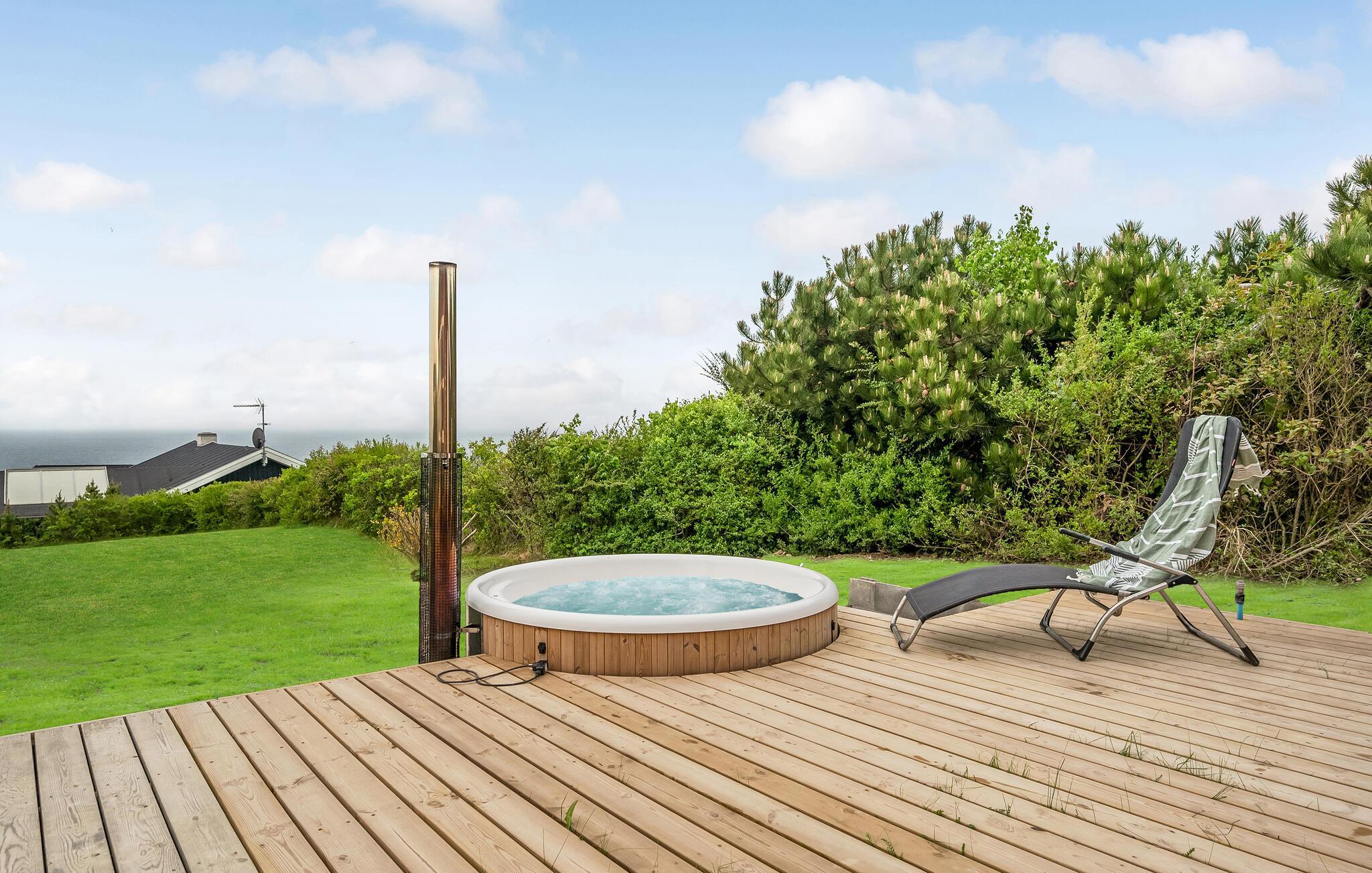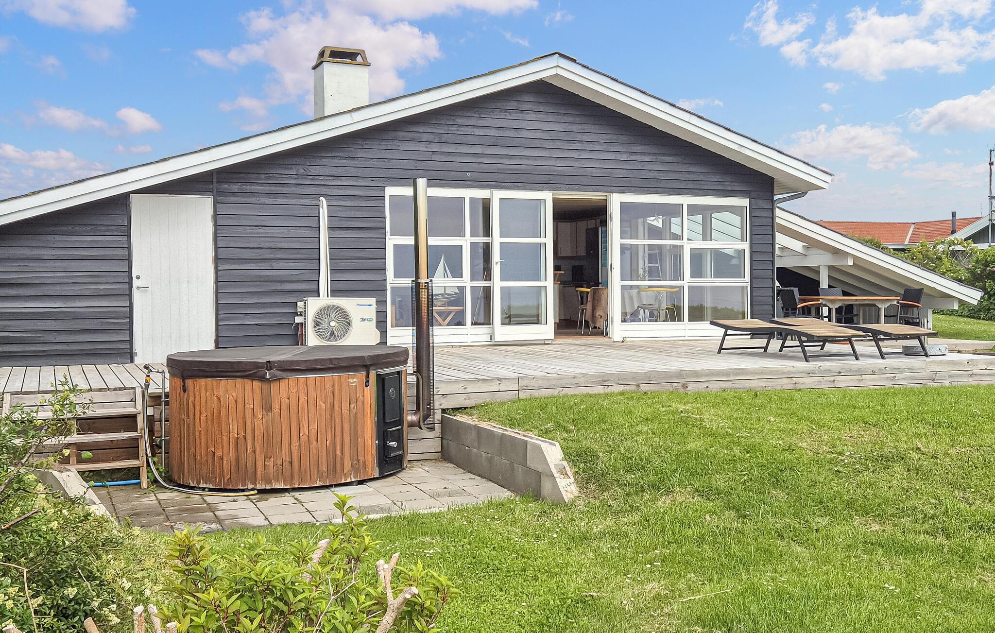 Schöne offene und überdachte Terrassenbereiche laden dazu ein, angenehme Stunden im Freien zu verbringen. Genießen Sie Leckereien vom Grill und den schönen Blick auf das Wasser. Entspannen Sie sich im finnischem Holzbad beim Blick auf den Großen Belt und abends in den Sternenhimmel.