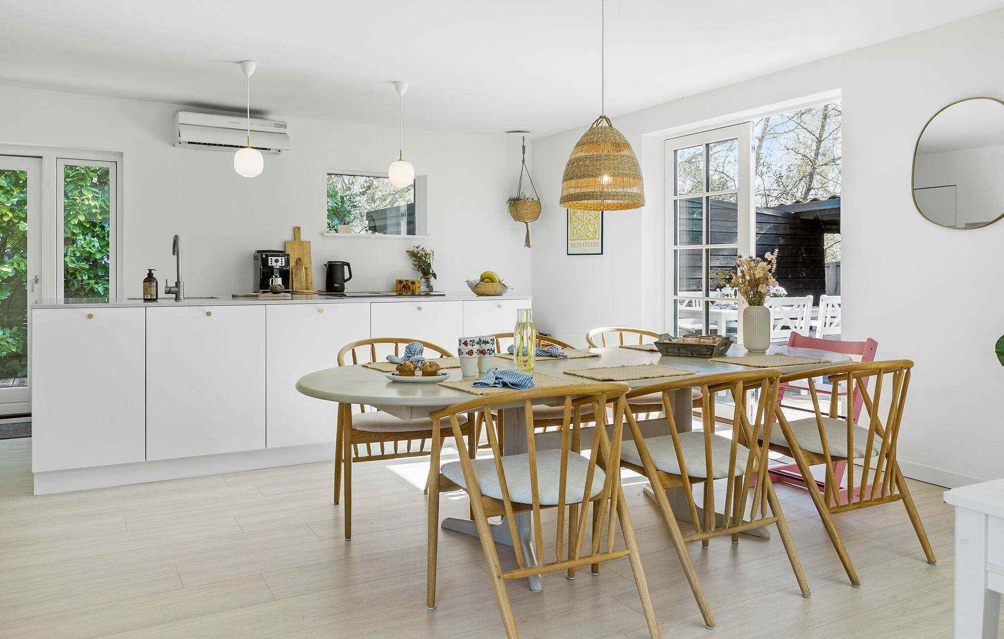 Familienfreundliches Ferienhaus nahe Sandstrand mit großer Terrasse und skandinavischem Stil in Dronningmølle, Dänemark.