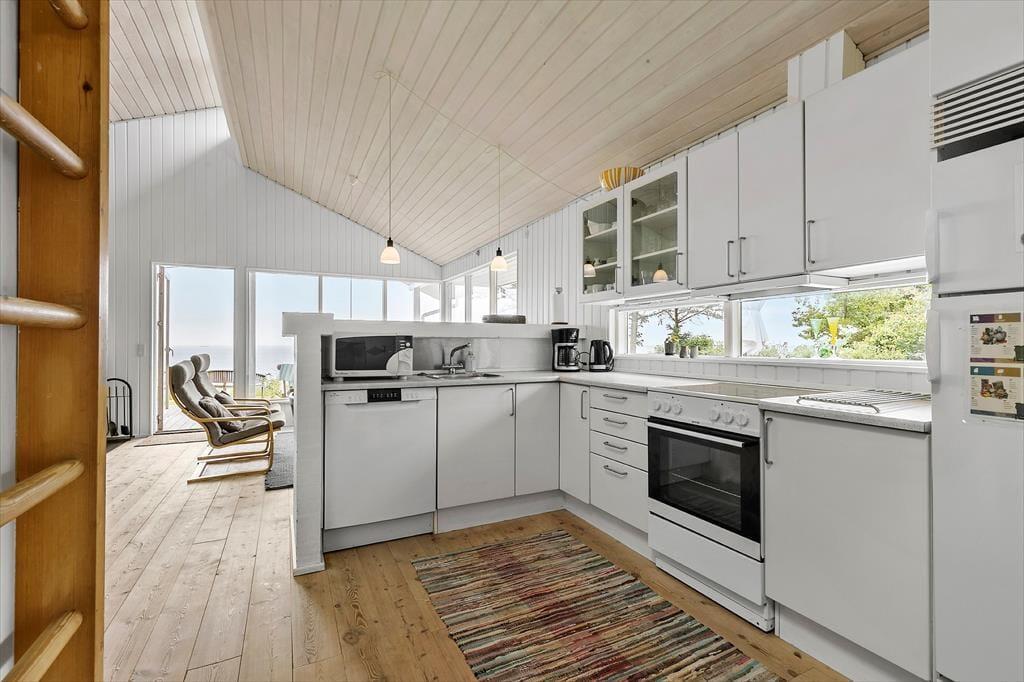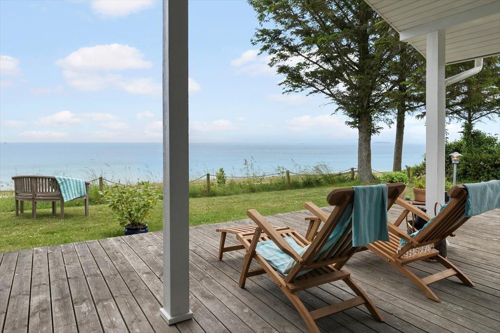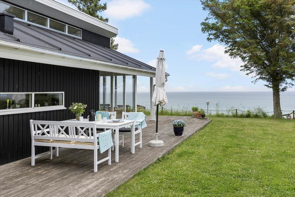 Die Ferienhaus befindet sich in schöner, erhöhter Lage und verzaubert mit einer wunderschönen Aussicht - unter anderem auf die kleine Insel Hjelm. Von deinem Grundstück führt dich ein privater Treppenabgang hinunter ans Meer. Ein Teil der Terrasse ist überdacht und bietet sich für die Abendstunden ebenso an, wie für Tage mit nicht ganz so schönem Wetter. Der hauseigene Grill lädt zu geselligen Runden und gemütlichen Stunden ein. Im Garten könnt ihr alle zusammen umhertollen und spielen - eurer Fantasie sind keine Grenzen gesetzt.