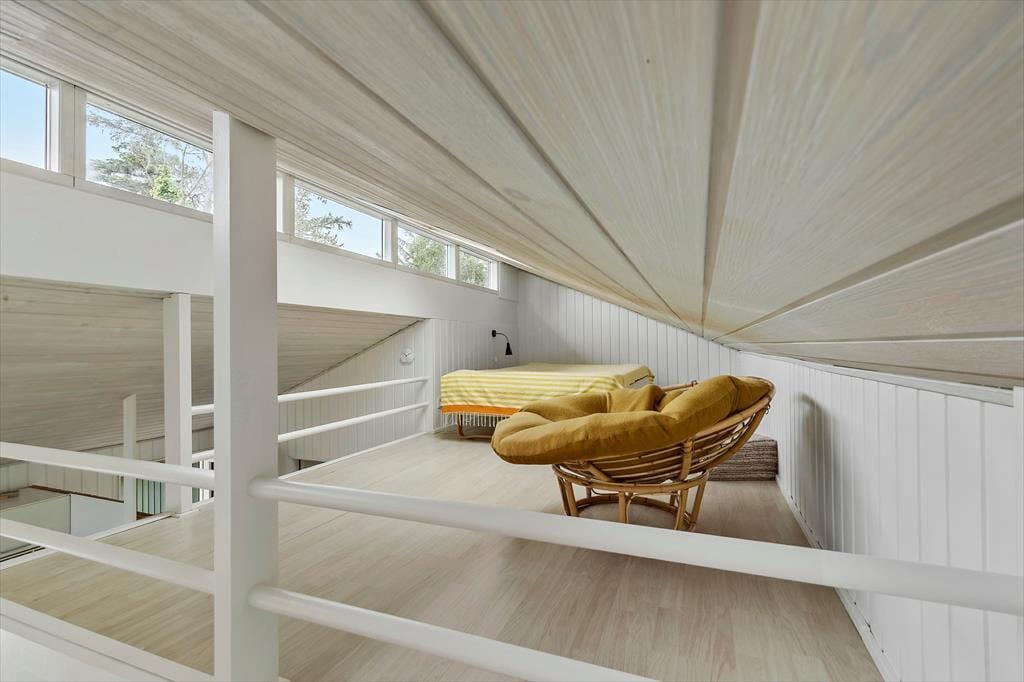 Nicht weit abseits des Wassers begrüßt dich dieses große, interessante Ferienhaus mit Panoramaaussicht. Das Haus beinhaltet einen hellen Wohnraum, der gemütlich möbliert ist und unter anderem einen Essbereich und eine große und funktionelle offene Küche umfasst. Durch eine Terrassentür trittst du vom Wohnraum hinaus auf ein fantastisches Terrassenareal, auf dem ein gemütliches Eckchen zum gemeinsamen Grillen und Essen einlädt. Die Schlafplätze verteilen sich auf vier Schlafräume. Ein Badezimmer mit Sauna ist ebenfalls vorhanden.