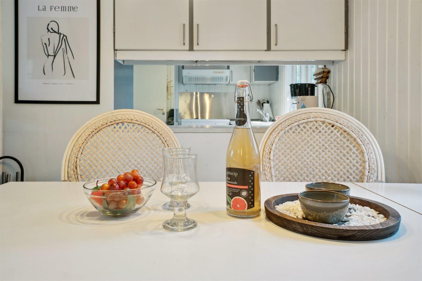Innen wirst du von hellen und freundlichen Räumen empfangen, die klassische Ferienhaus-Gemütlichkeit ausstrahlen. Das Badezimmer verfügt über eine praktische Duschniche, und die offene Küche ist voll ausgestattet, unter anderem mit Geschirrspüler, Induktionsherd und Rührmaschine. Im Wohnzimmer findest du einen Kaminofen, ein Smart-TV und schnelles WLAN, sodass du dich entweder entspannen oder mit der Außenwelt in Verbindung bleiben kannst.