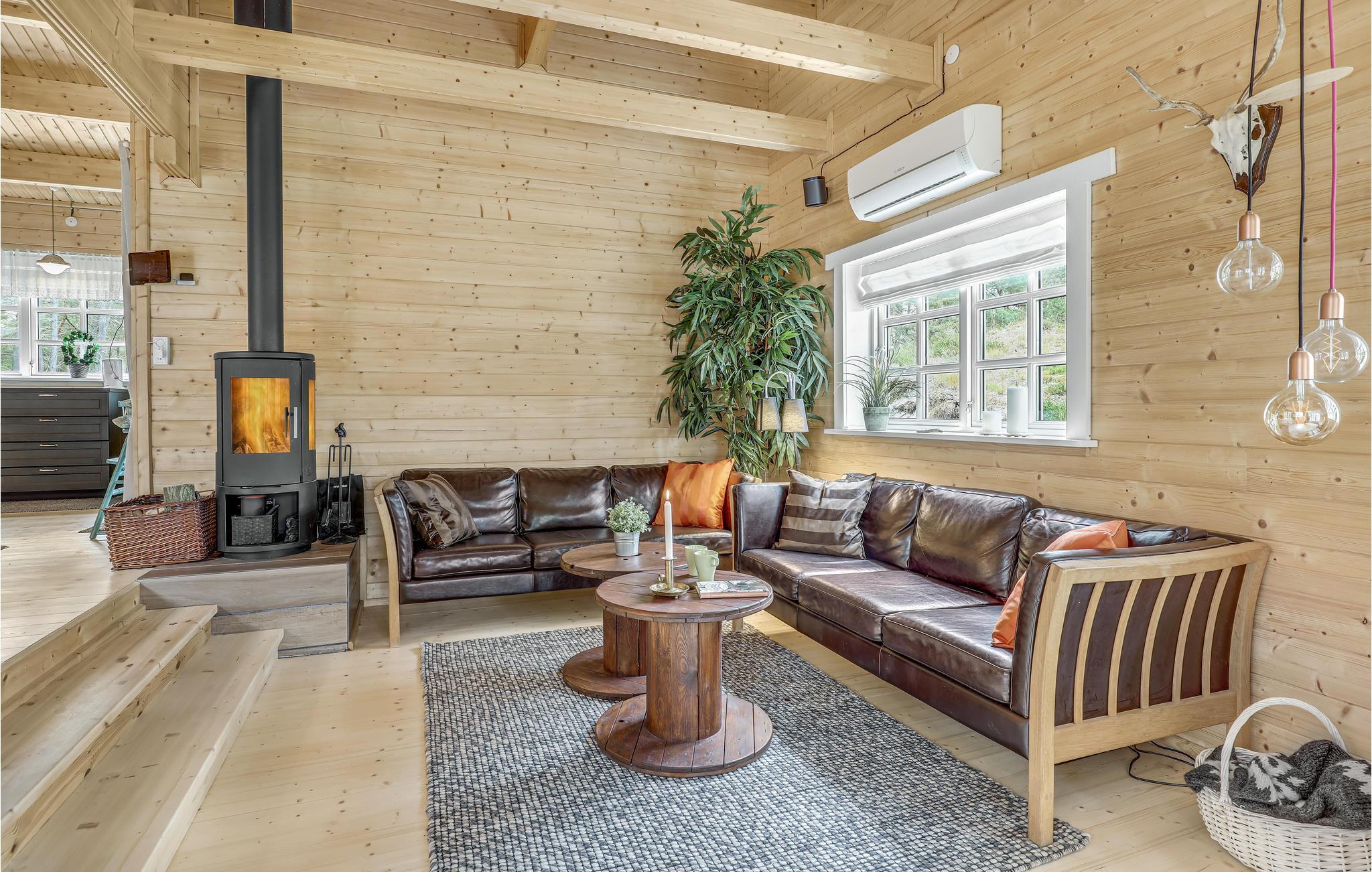 Dieses fantastische Holzhaus aus dem Jahr 2016 ist eine wahre Oase. Holz überall, gemütliche Möbel, von denen aus Sie das knisternde Feuer im Holzofen beobachten oder auf dem Breitbildfernseher einen guten Film sehen können, die riesige Holzterrasse, auf der Sie sowohl tagsüber als auch abends gesellig ihre Mahlzeiten genießen können und die grandiose Natur Bornholms direkt vor der Tür.