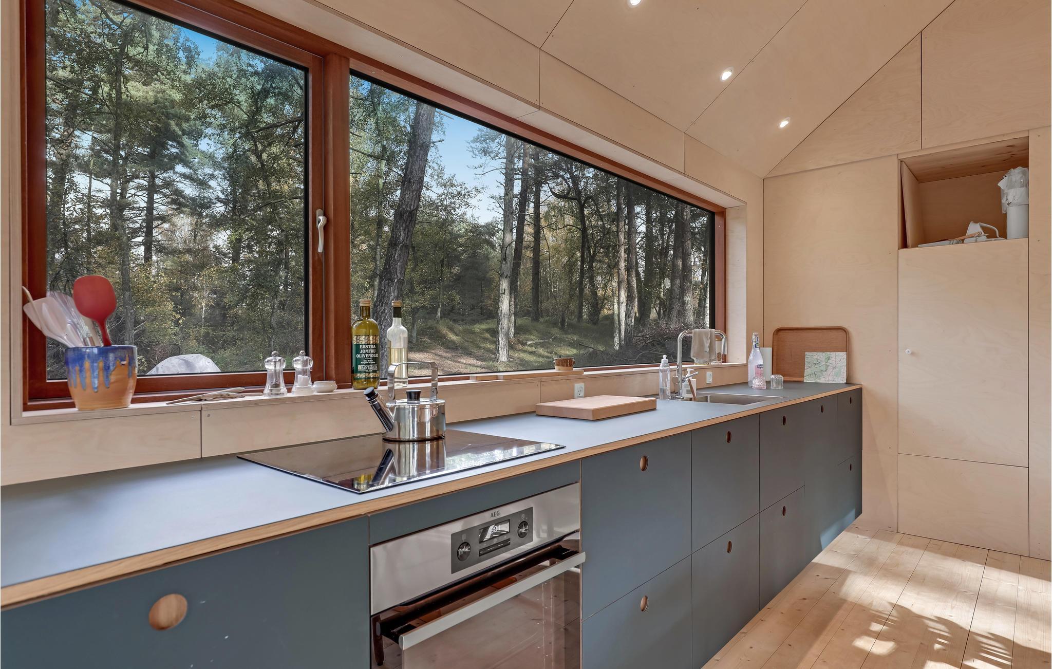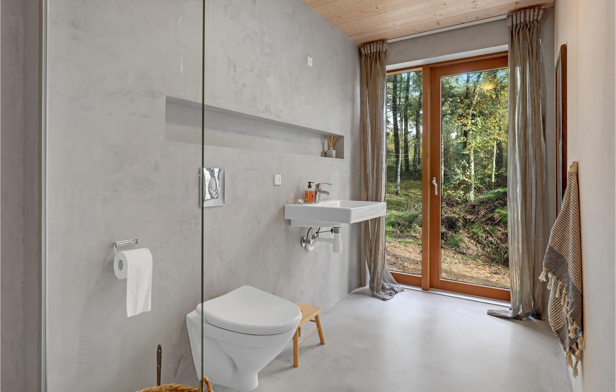 Freuen Sie sich auf einen entspannenden Aufenthalt in diesem modernes, in einem Waldstück gelegenen Ferienhaus. Die vielen Fensterpartien und Türe des Hauses lassen vieles Licht ein und schaffen eine angenehme Atmosphäre und Nähe zur umgebenden Landschaft. Der Mittelpunkt des Hauses ist das große, kombinerte Wohnzimmer und Küche mit Dachschräge, sodass Sie sich in der modern ausgestatteten Küche kulinarisch entfalten und gleichzeitig mit den übrigen Gästen unterhalten können. Am Esstisch können Sie mit Ihrer Familie oder Ihren Freunden schön gemeinsam essen, und an Sommerabenden die Türe aufmachen und sich auf die große Terrase zurückziehen, wo Sie mit Waldblick und Vogelgesang den Tag ausklingen lassen können.