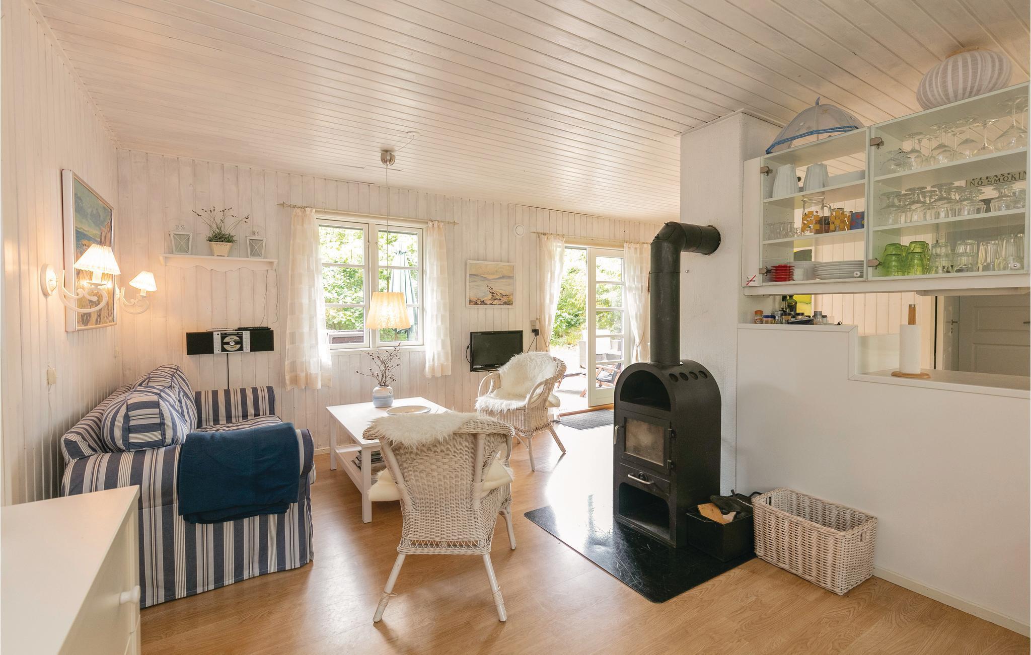 Gemütliches Holzferienhaus im beliebten Dueodde Feriendorf mit ca. 50 Ferienhäusern. Das Haus ist hell und freundlich eingerichtet mit offener Küche und Esszimmer, sowie Wohnzimmer. Vom Esszimmer haben Sie direkten Zugang zur 15 m2, wo Sie viele Ferienstunden mit Aussicht auf die schöne Bornholmer Natur genießen können. Die Umgebung ist sehr kinderfreundlich mit kleinen Pfaden und kurzem Abstand zum schönen Sandstrand. Ausserdem können Sie sich in und an den zwei gemeinsamen Aussenpools (beheizt, ca. 15.6.-15.9.) vergnügen. Im Gemeinschaftshaus gibt es Tischtennis und eine Wäscherei gegen Bezahlung. Hier gibt es ebenfalls die Möglichkeit, sich gratis mit seinem Laptop mit dem Internet zu verbinden. Viele ausländische Kanäle können im TV gesehen werden. Dieses gemütliche Ferienhaus ist zu jeder Jahreszeit der ideale Ausgangspunkt für Ferien auf Bornholm.