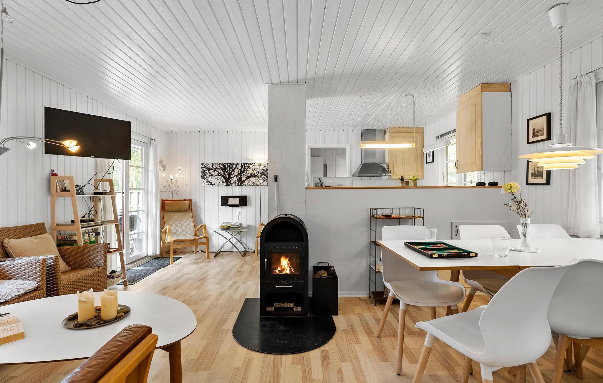 Dieses gemütliche Holzferienhaus liegt in der 1. Häuserreihe vom Strand. Es liegt einen kurzen Fußweg von einem der besten Sadstrände der Insel und gehört zu einem größeren Feriencenter aus etwa 50 Häusern. Hier können Sie sich auf eine kinderfreundliche Gegend mit gemeinsamen Spielplatz und einem Swimmingpool im Freien freuen. Die Einrichtung ist schön, und vom Wohnzimmer erreichen Sie direkt die herrliche Terrasse, auf der Sie in den angenehmen Gartenmöbeln den Urlaub genießen können. Wenn Sie ans Meer möchten, müssen Sie sich nur ein Handtuch über die Schulter werfen und losgehen. Für einen aktiven Urlaub kann die ganze Familie lange Spaziergänge am Wasser entlang machen. Im Gemeinschaftsgebäude sind ein Tischtennisraum, Waschküche und Internet gegen Bezahlung vorhanden. Hier stehen Ihnen auch ein Pool und ein Kinderpool (im Freien und beheizt von etwa 15. Juni bis 1. September) zur Verfügung, sie gehören zum Feriencenter Dueodde Ferieby.