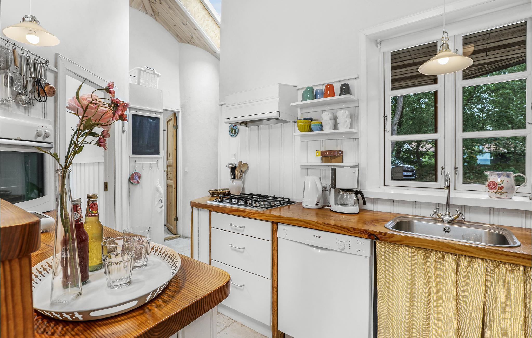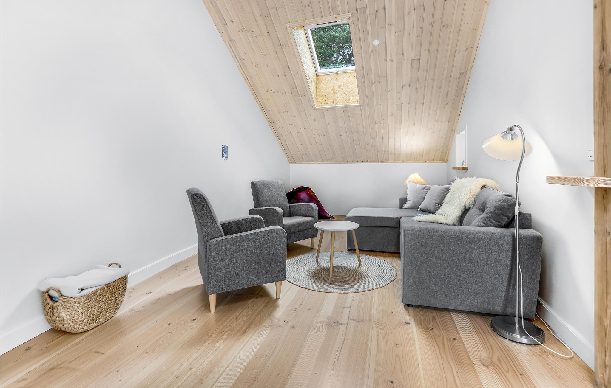 Einzigartig gelegenes Holzhaus in 1. Reihe zum schönen Sandstrand. Von diesem charmanten und gemütlichen Ferienhaus haben Sie direkten Zugang zum Strand und eine Bad in der Ostsee ist sehr zu empfehlen. Das Ferienhaus wird in den Jahren 2019/2020 um einen Privatbereich erweitert, der nicht Teil der Vermietung ist, aber während der Mietsaison finden keine Bauarbeiten statt. Dieses einzigartige Ferienhaus ist sehr charmant und rustikal eingerichtet mit runden Wänden und hohen Decken im Wohnbereich. Gemütliche offene Küche und 3 kleinere Schlafzimmer. Gut ausgestattetes Badezimmer mit kleiner, aber gemütlicher Sauna. Vom sehr gemütlichen Wohnzimmer des Hauses gelangen Sie auf einen kleinen Dachboden. Vom Wohnzimmer aus haben Sie Zugang zu einer schönen Holzterrasse und einen herrlichen Blick auf das Meer und die wunderschöne Natur Bornholms. Eigener Weg zum Strand. Die Größe des Hauses macht es für 4 Personen geeignet. Dieses einzigartige Ferienhaus ist einfach ein Juwel - teilweise wegen seiner fantastischen Lage und teilweise wegen seines ganz eigenen Stils und seiner Architektur. Die Gegend eignet sich zum Radfahren und Wandern. Das beliebte Fischerdorf Snogebæk mit guten Einkaufsmöglichkeiten und attraktiven kleinen Geschäften und Restaurants ist ebenfalls nicht weit entfernt.