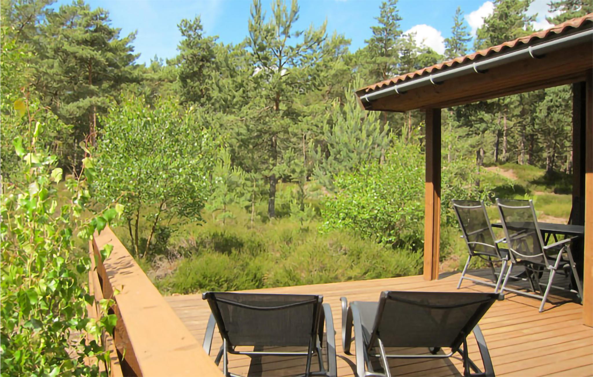 Das Haus verfügt über eine schöne, teilüberdachte Holzterrasse mit Essbereich und Sonnenliegen. Zum Haus gehört auch eine weitere kleine Holzterrasse mit Morgensonne – bestens geeignet für das Frühstück und die erste Tasse Kaffee des Tages. Die Umgebung bietet reichlich Gelegenheit für körperliche Ertüchtigung und schöne Spaziergänge.