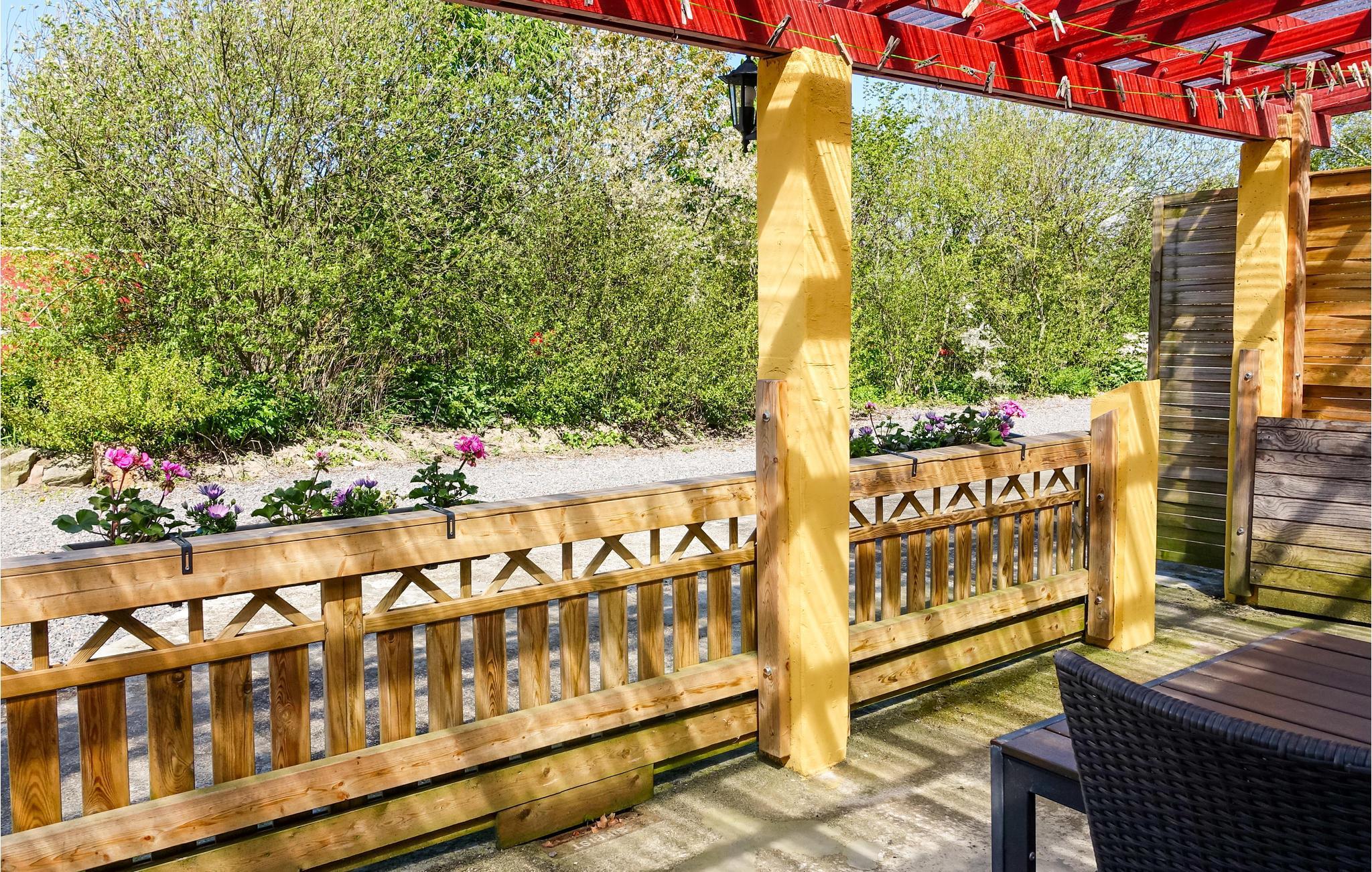 Gemütliche Ferienwohnung mit Holzbauweise, überdachter Terrasse und Gemeinschaftsgarten nahe kinderfreundlichem Strand.