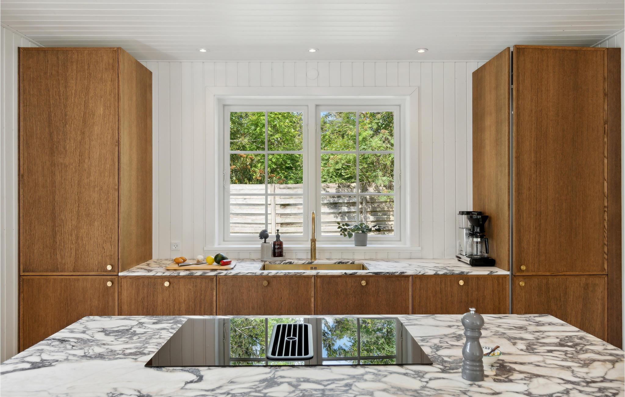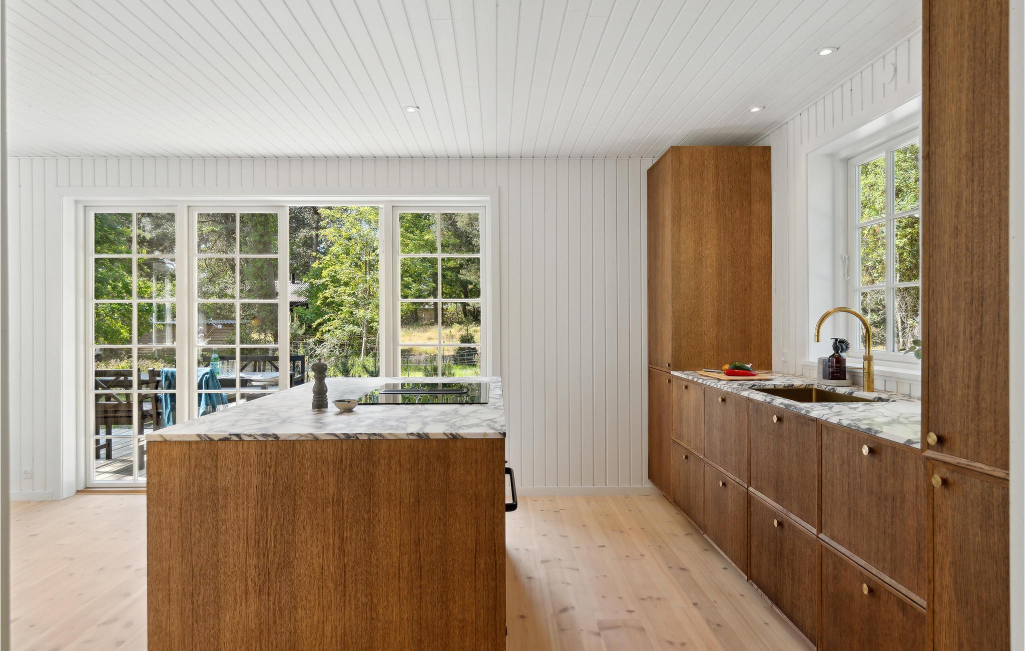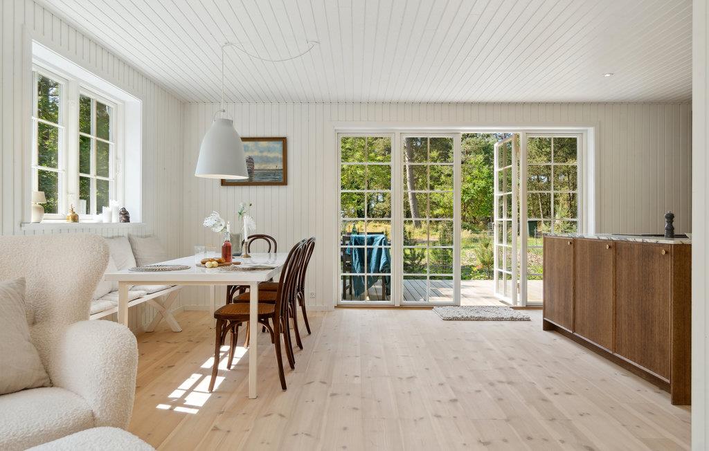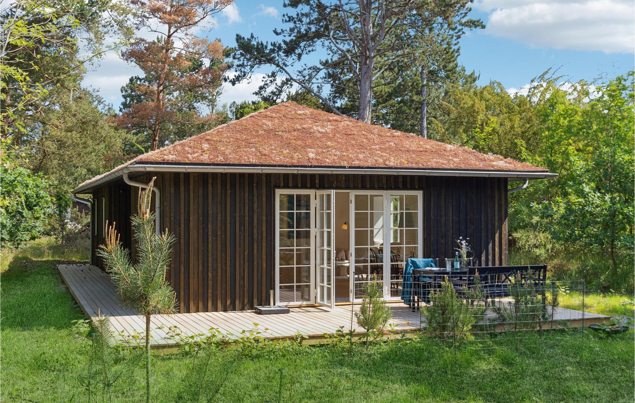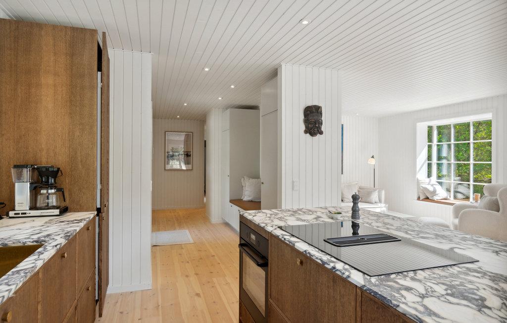 Auf dem einzigartigen Sjællands Odde liegt dieses schöne Ferienhaus auf einem ruhigen und abgeschiedenen Grundstück, umgeben von idyllischen Nadelbäumen. Das Haus mit seinem schönen Grasdach fügt sich wunderbar in die grüne Umgebung ein. Hier ist Platz für die Familie oder Freunde, um Ruhe und Entspannung zu finden, umgeben von schöner Qualität. Die Einrichtung ist stilvoll und strahlt mit hochwertigen Möbeln, schönen Details und hellen Farben Luxus aus. Gleichzeitig lassen die Sprossenfenster weiches Licht herein und verleihen den Räumen einen Hauch von Nostalgie. Genießen Sie einen ruhigen Moment in der gemütlichen Sitzecke mit Blick auf den Garten, oder bereiten Sie ein gutes Abendessen in der modernen Küche mit den schönen Marmorarbeitsplatten zu.