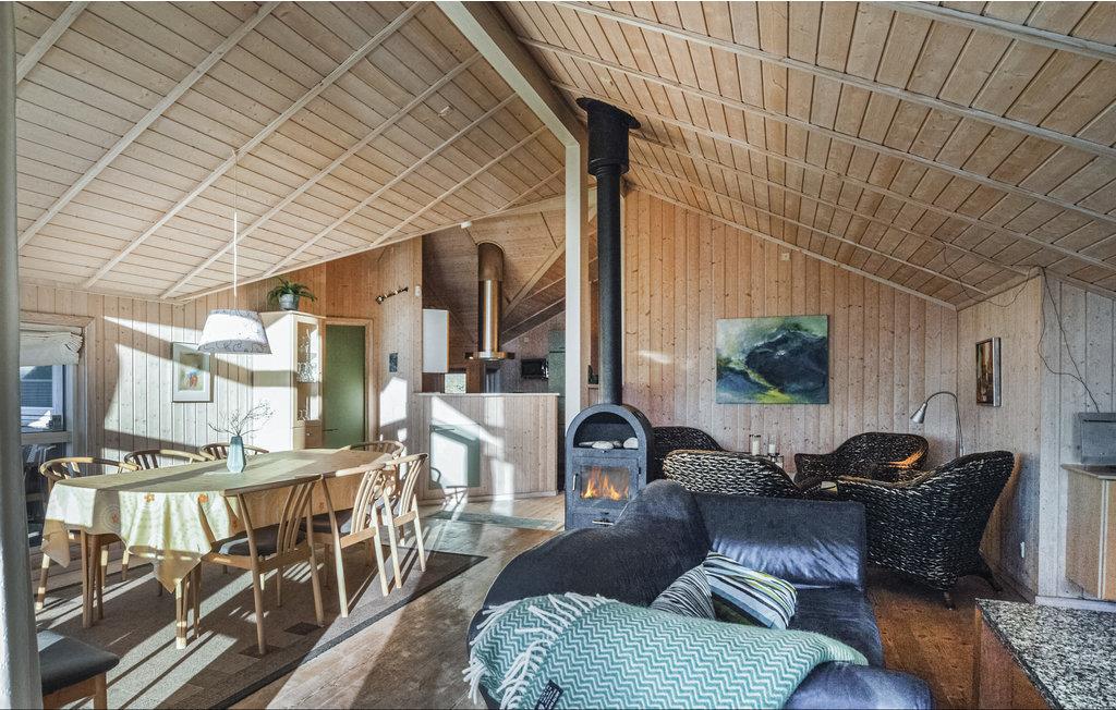 Gemütliches Ferienhaus mit Kamin, Meerblick und Sauna nahe Ebbeløkke Strand in Dänemark.