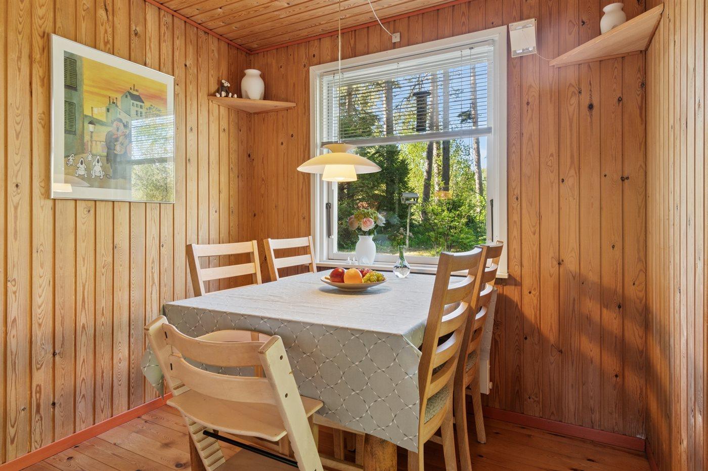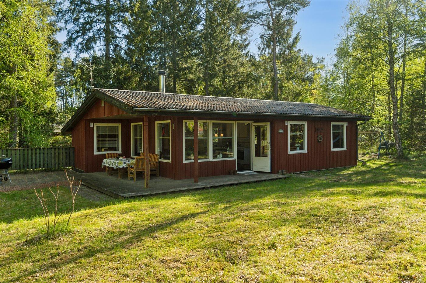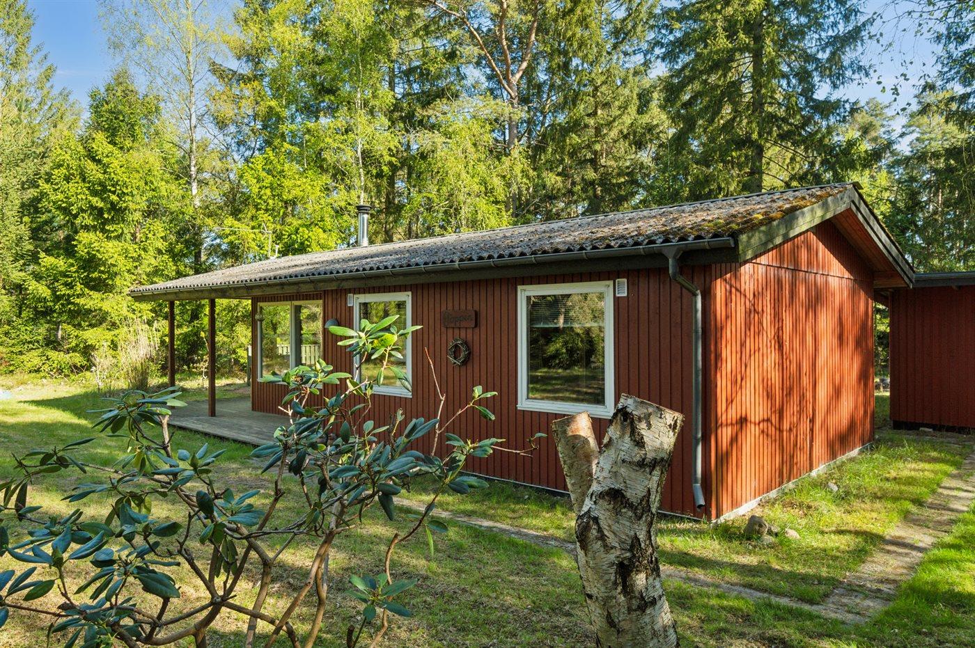 Ein gemütliches, kleines Ferienhaus im Feriengebiet Ebdrup auf Djursland. Das Haus liegt auf einem wirklich schönen Naturgrundstück, das von Bäumen und Wald umgeben ist.